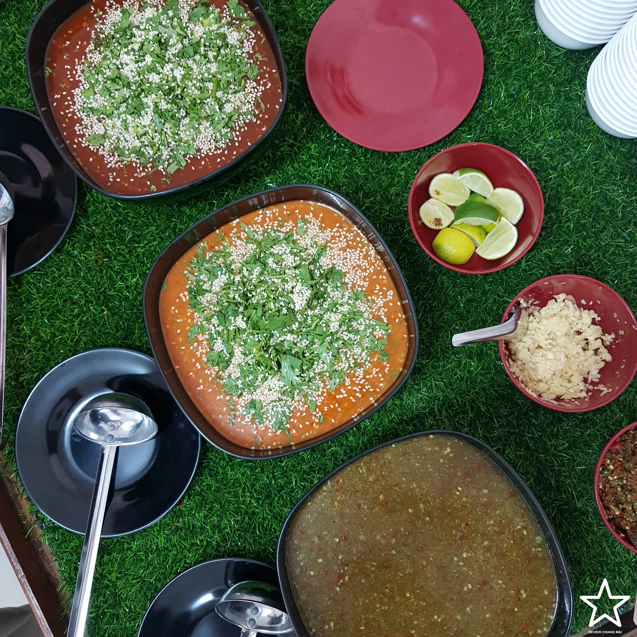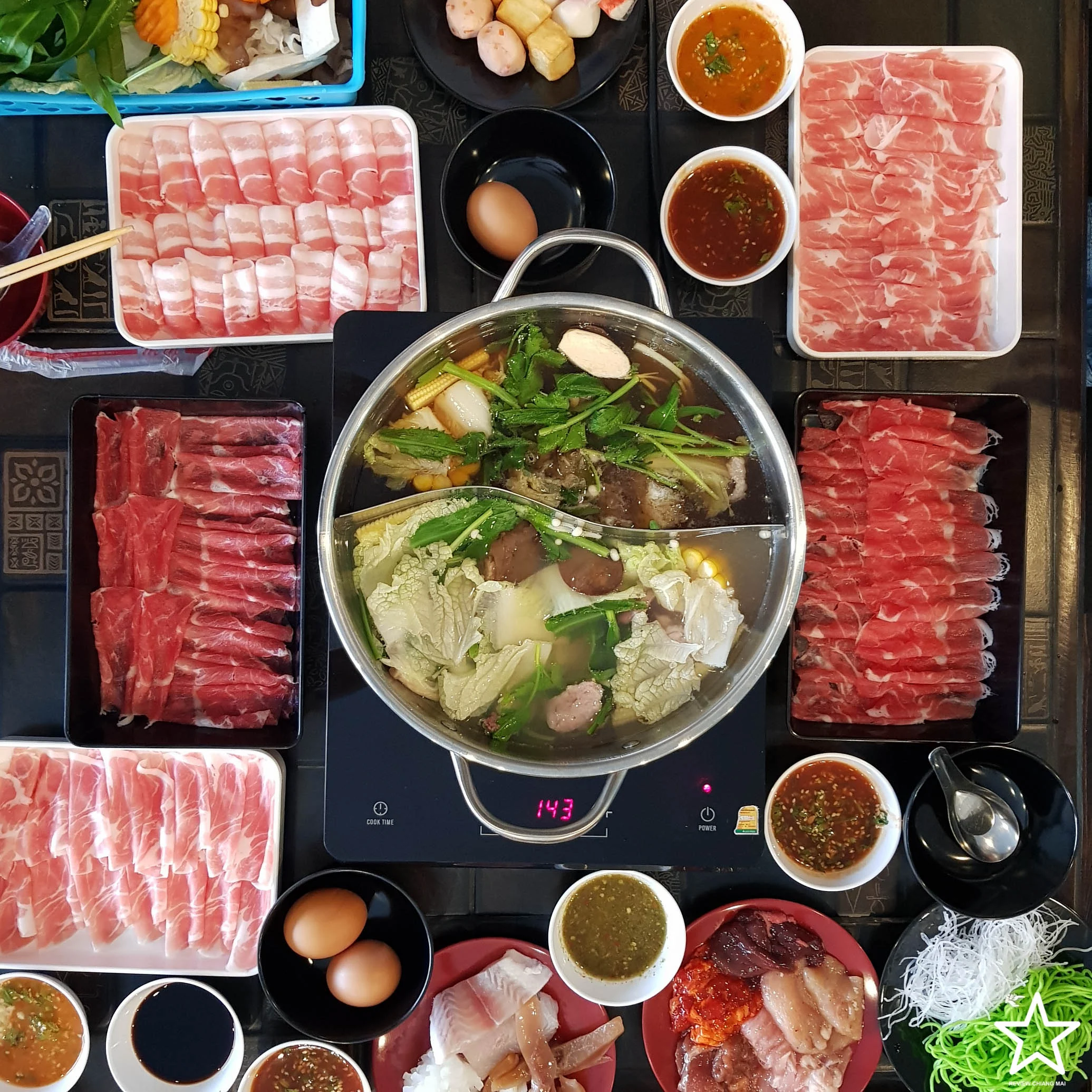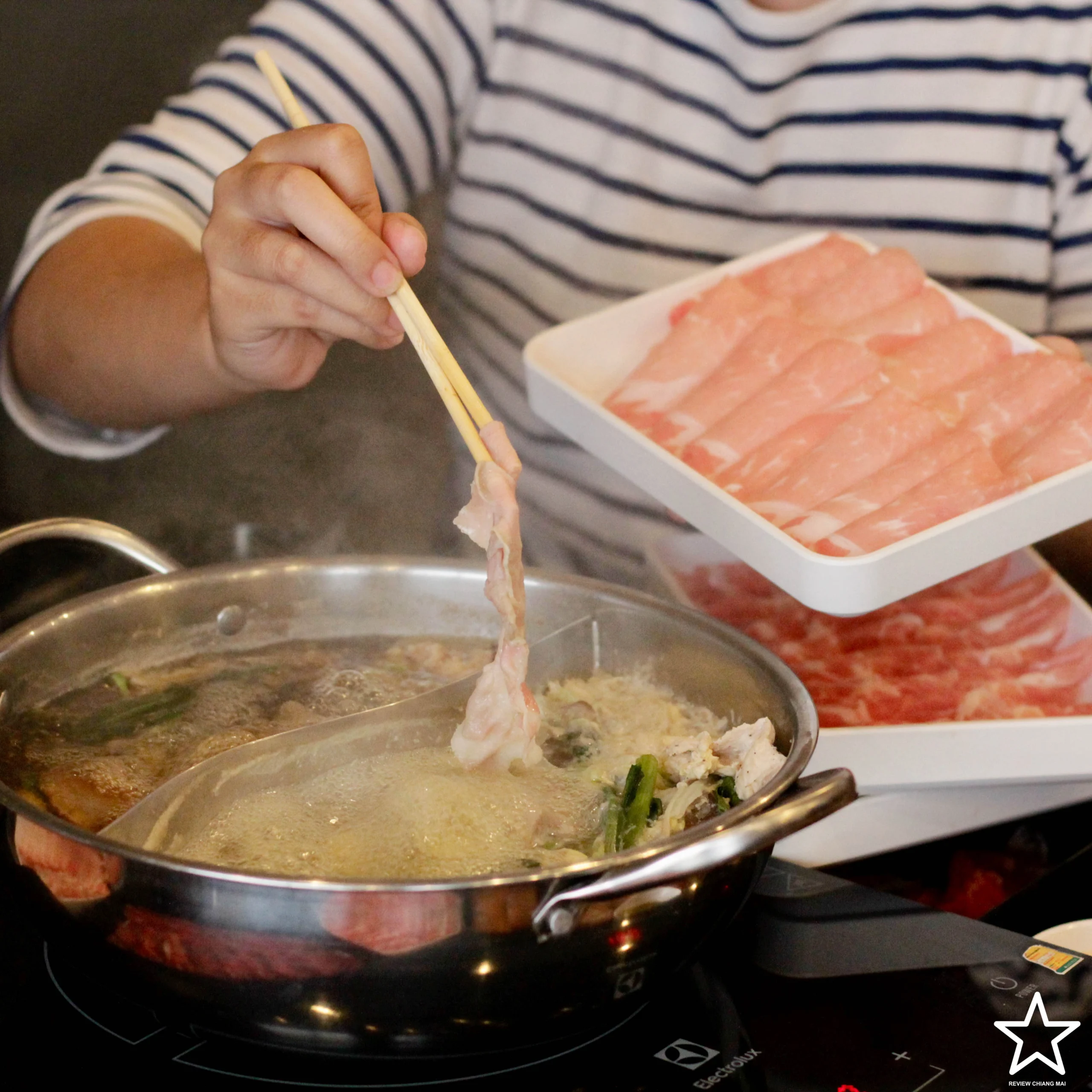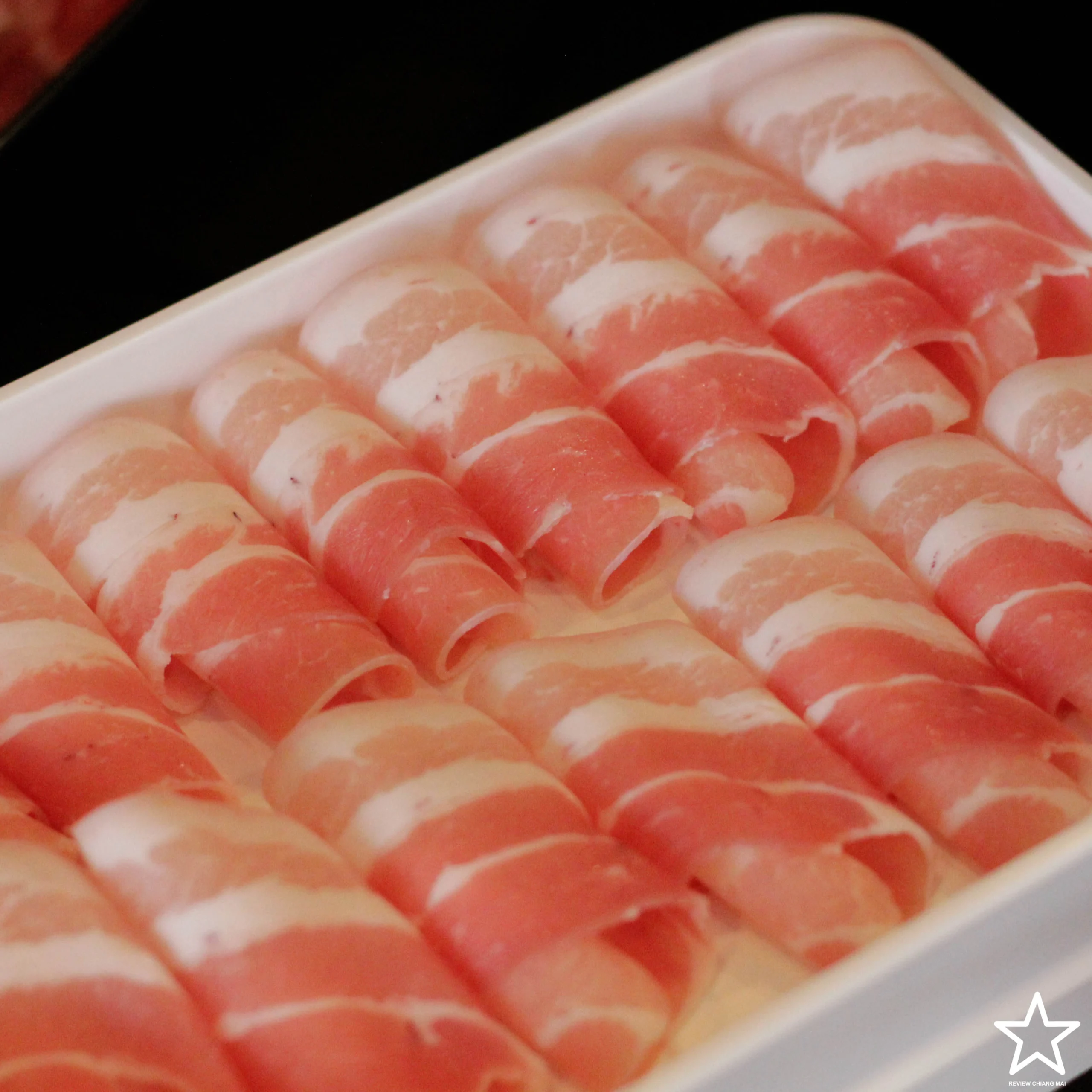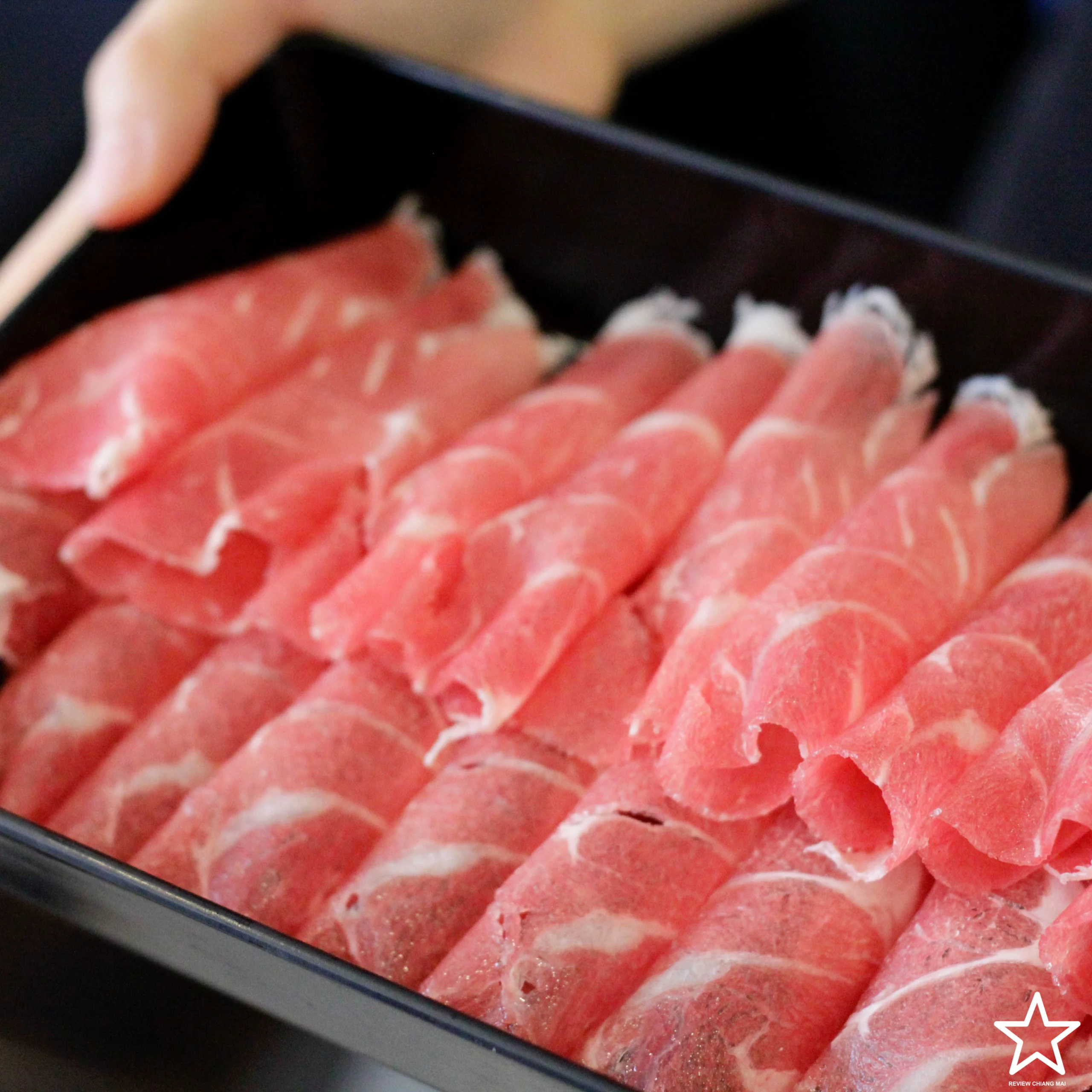 - “เนื้อ” นำเข้าจาก ออสเตเลียและญี่ปุ่น เป็นเนื้อใบพาย และเนื้อริบอาย นอกจากเนื้อสไสด์แล้วยังมีสามชั้น และสันคอสไลด์ ที่สไลด์ตาม Order ที่สั่งตรงนั้นเลย จะทำให้เนื้อ และหมูได้รูป ไม่แข็งเป็นก้อน