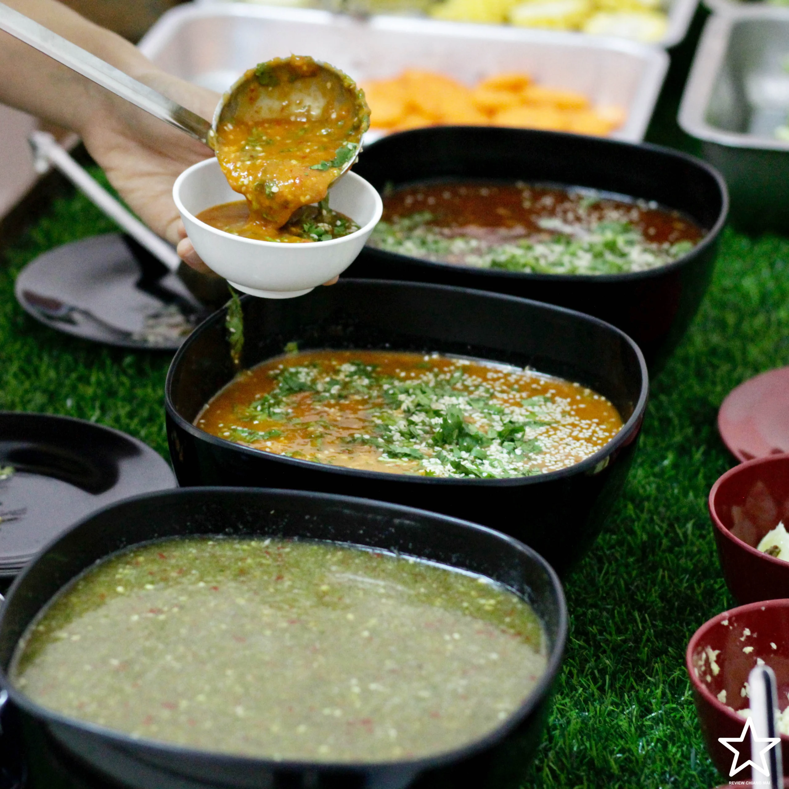 - มีน้ำจิ้มสูตรทำเองจากทางร้านทั้งสามแบบ สามรส ได้แก่ น้ำจิ้มสุกี้หวาน น้ำจิ้มสุกี้เผ็ด และน้ำจิ้มสามรส แต่ก็ยังมีน้ำจิ้มพอนสึสำหรับที่ชอบทานคู่กับชาบูน้ำดำ