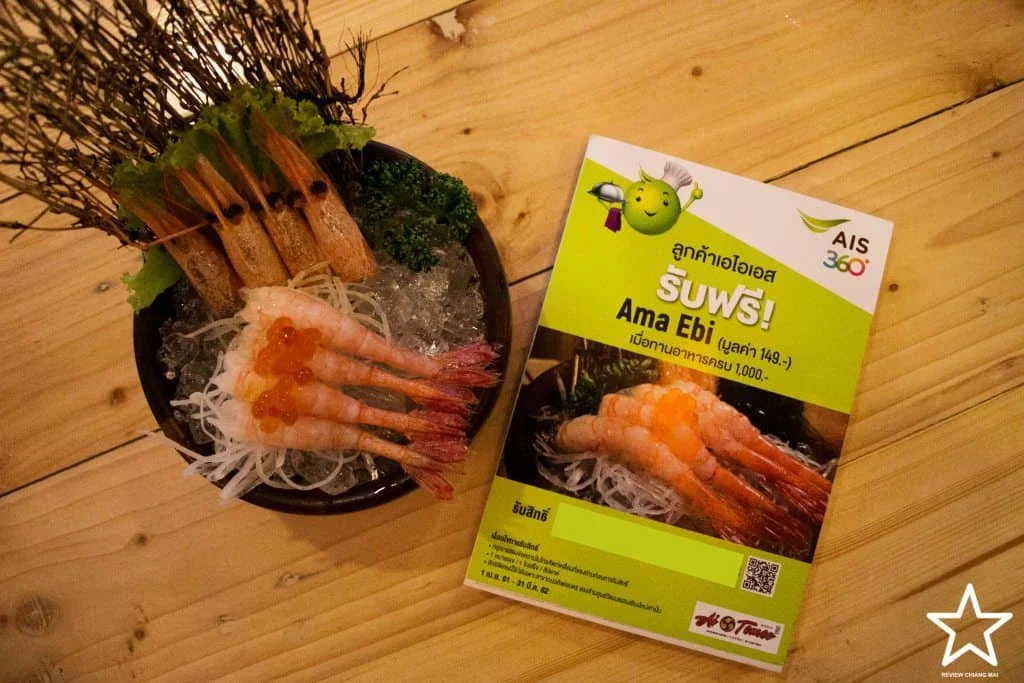 Ai ToMoE japanese foods ร้านอาหารญี่ปุ่นอีกหนึ่งร้านที่ห้ามพลาด เพราะใครใช้ เอไอเอส รับฟรี!! ไปเลยยย เมนู Ama Ebi (มูลค่า 149 บาท) เมื่อทานอาหารครบ 1,000 บาท โปรโมชั่นให้ใช้กันยาวๆ ถึง 31 มีนาคม 2562 สิทธิพิเศษนี้ใช้ได้เฉพาะสาขาถนนทิพยเนตร ตรงข้ามศูนย์วัฒนธรรมเชียงใหม่เท่านั้น
