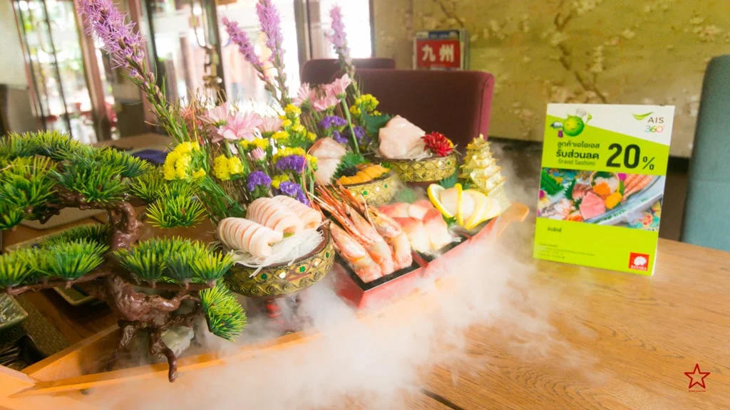 Hanawa Japanese Restaurant ร้านอาหารญี่ปุ่นบรรยากาศเหมือนหลุดเข้าไปอยู่ในประเทศญี่ปุ่น ตัวเมนูก็อลังการเว่อร์โดยเฉพาะเมนู Grand Sashimi ยิ่งถ้าเป็นลูกค้าเอไอเอสนี่จะได้รับส่วนลดถึง 20% กันเลยทีเดียว ตั้งแต่ 1 เมษายน 61 – 31 มีนาคม 62