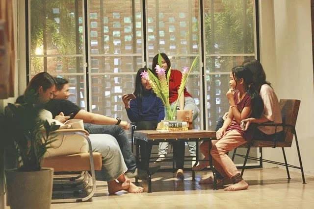 กิจกรรมสนทนาพูดคุยระหว่างพักผ่อนที่ homestay ใกล้ตัวเมือง