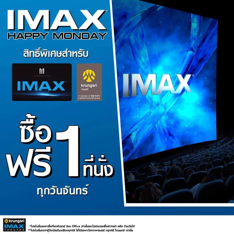 สุดคุ้มไปกับ IMAX Monday สมาชิก M Gen IMAX รับสิทธิ์ซื้อ 1 ฟรี 1 ที่นั่ง #ในระบบIMAX ทันที#ทุกวันจันทร์ โปรดีสุดคุ้มแบบนี้ ห้ามพลาด!!