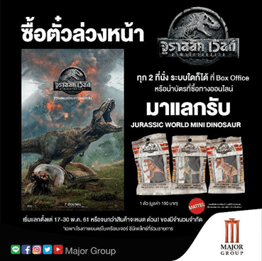 พิเศษ!! ซื้อบัตรชมภาพยนตร์ล่วงหน้าเรื่อง Jurassic World: Fallen Kingdom