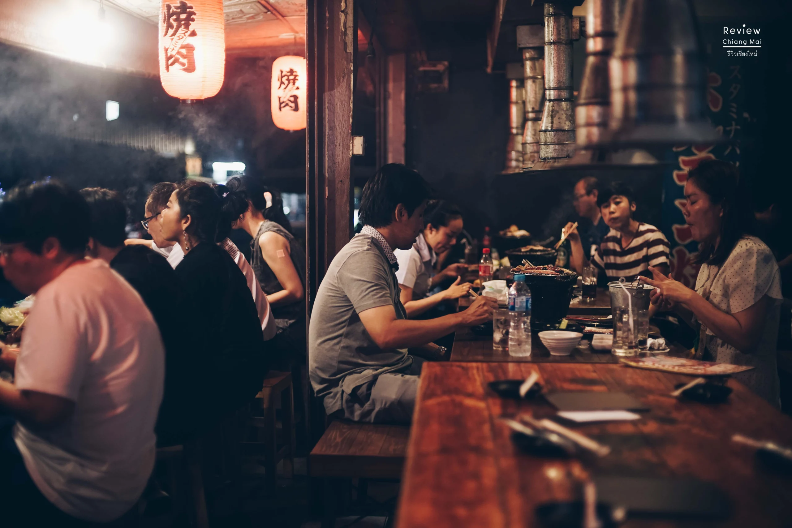 แนะนำ ย้ำ ย้ำ ว่าให้โทรไปจองไม่งั้นเจอสภาพนี้ล่ะ ยืนรอไปกันต่อ ดมกลิ่นหอมๆของถ่านไม้ เนื้อย่าง ยืนตาปริบดูเขากินกัน ร้านมีสองฝั่งนะจ๊ะ เข้าผิดชีวิตเปลี่ยนนะ ร้านหนึ่งมีเตาย่าง ปล่องดูดควัน ฝั่งนี้สายเนื้อเดินหน้าไปรอเหมือนในภาพเลย อีกฝั่งจะเป็นอาหารญี่ปุ่นเป็นหลักและเป็นเมนูหม้อไฟแบบญี่ปุ่น นั่งฝั่งญี่ปุ่นสั่งหม้อไป อาหารญี่ปุ่นได้ แต่สั่งเตาย่างไม่ได้นะ