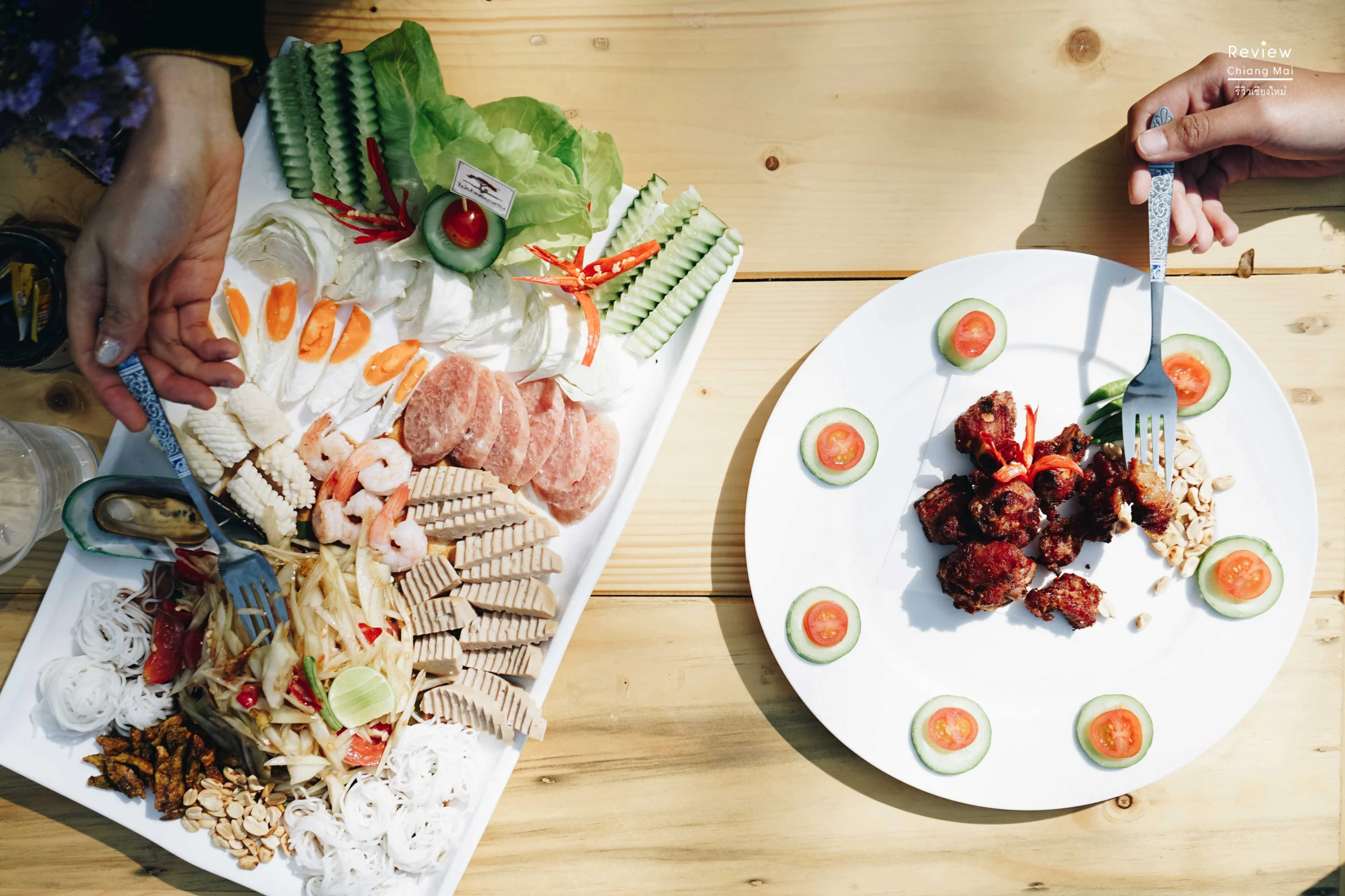 แต่ถ้ายำจานเดียวเอาไม่อยู่ก็จัดส้มตำไม้ป่าเดียวกัน+แหนมซี่โครงทอดไปเลยจบ ไม่จบให้รู้ไป
