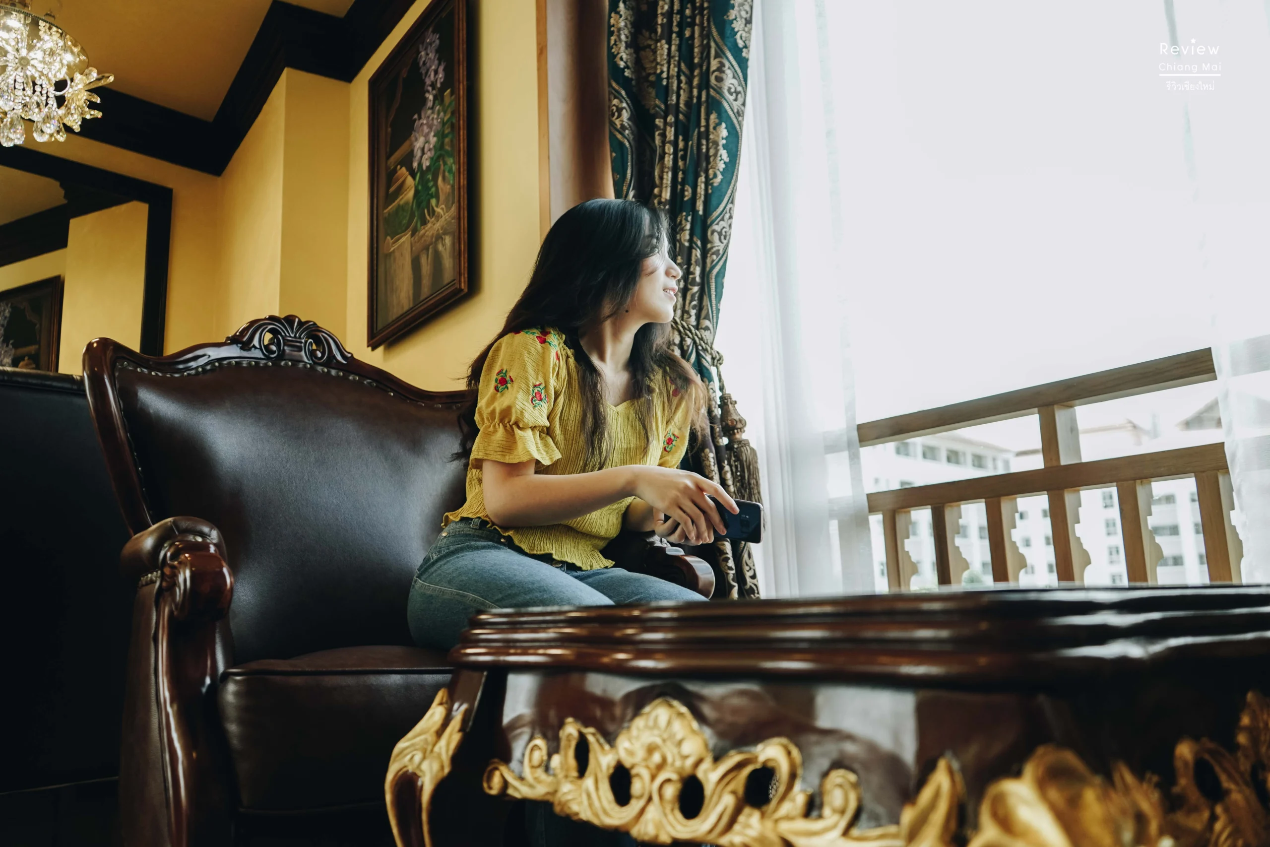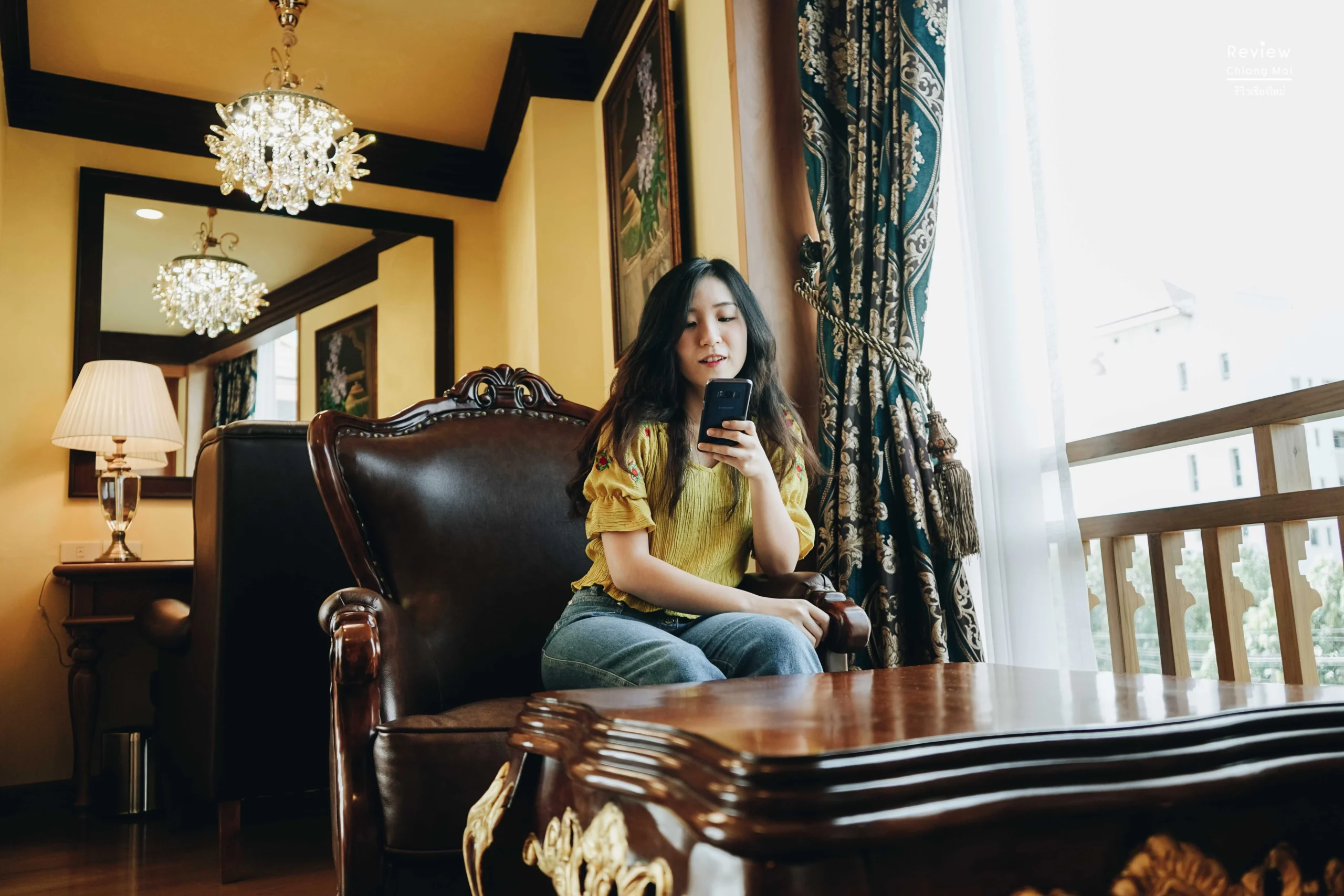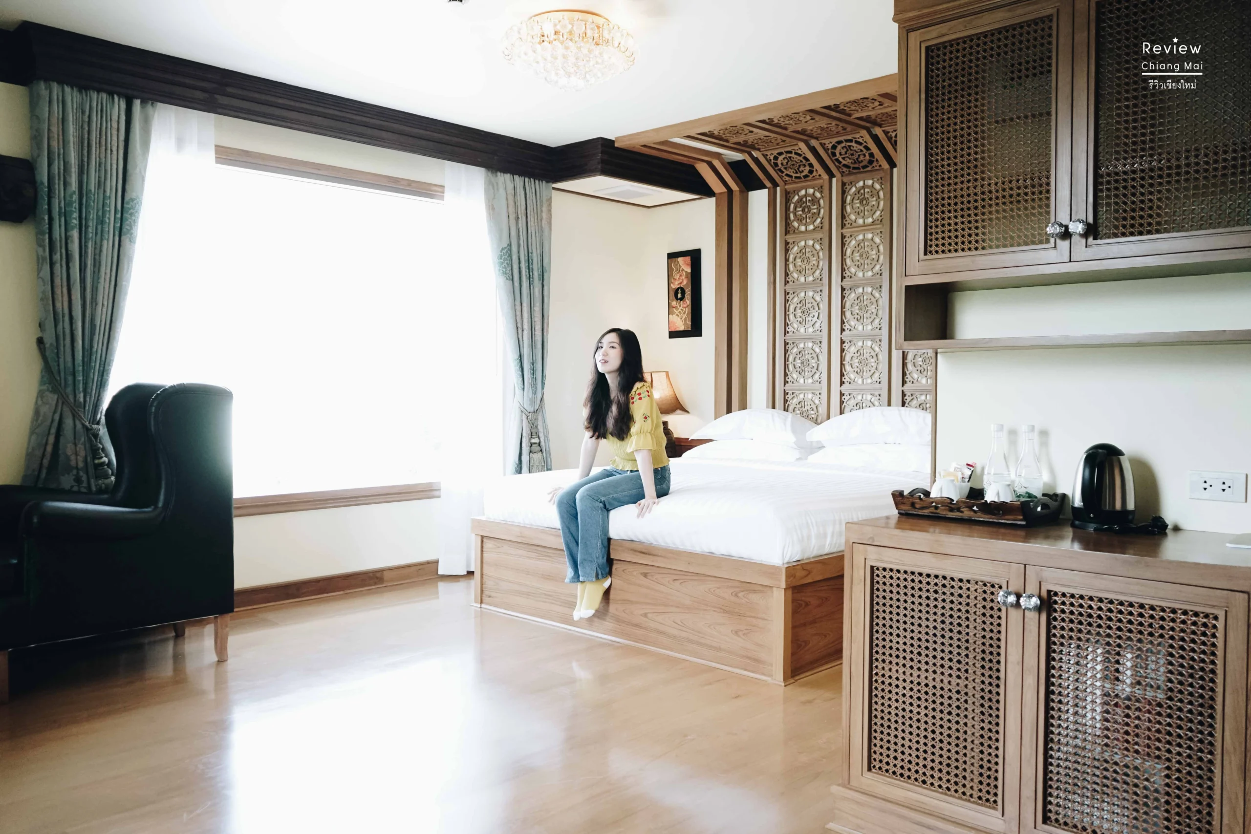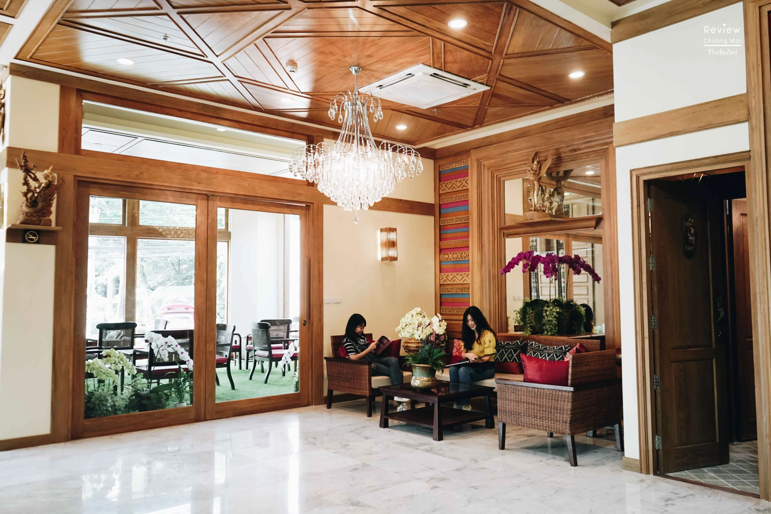 ภายในตกแต่งพื้นด้วยลายไม้ให้ความรู้สึกอบอุ่น ข้าวของเครื่องใช้มีความเป็นล้านนาประยุกต์แต่ก็ไม่ได้โบราณจนน่ากลัว ยังมีความสะดวกสบายด้วยเฟอร์นิเจอร์หรู อินเตอร์เน็ตทีวีที่จะนอนดูซีรีย์เท่าไหร่ก็ไม่ตัดเน็ต เน็ตเขาแรงตั้ง 300 MB