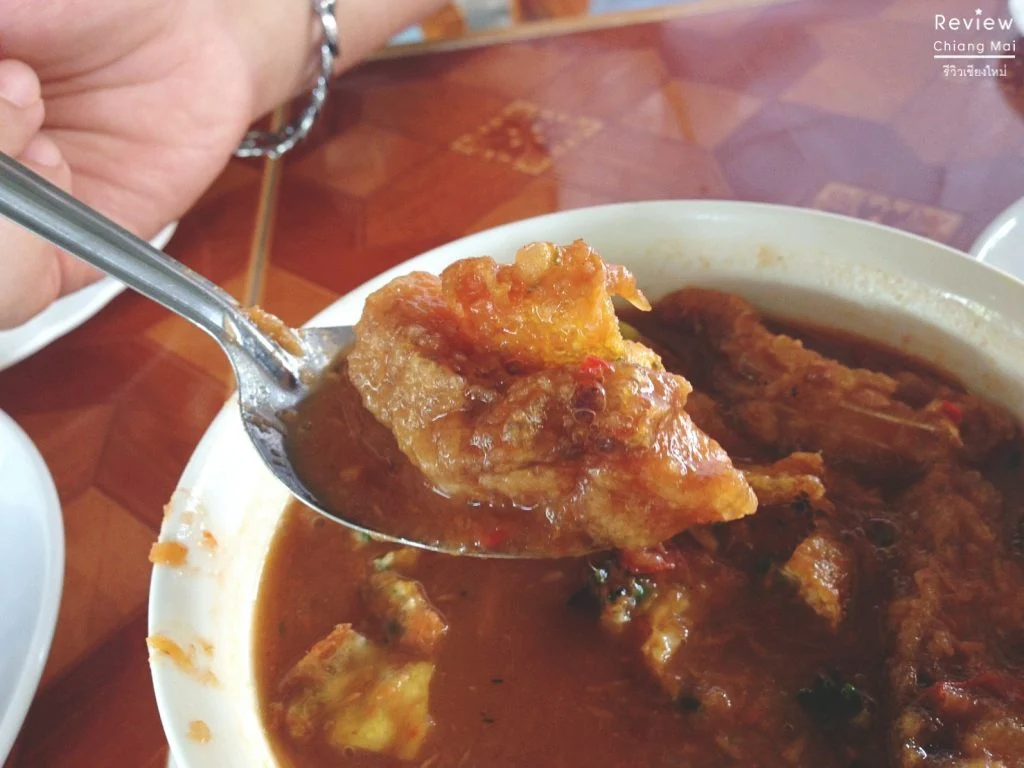 และแล้วเวลาที่รอคอยก็มาถึง อาหารมาเสิร์ฟแล้ววว เห็นแล้วถึงกับอึ้งสายกินฟินแน่นอน แค่รูปร่างก็น่ากินแล้ว ว่าแล้วก็จัดกันเลยดีกว่า เริ่มที่แกงส้มซดเข้าไป รู้สึกถึงความแปลกใหม่ด้วยความเต็มของเครื่อง นับว่าเหมือนมีเนื้อแกงอยู่ทุกการซดน้ำเลยก็ว่าได้