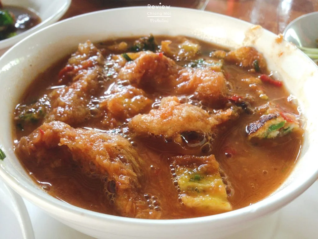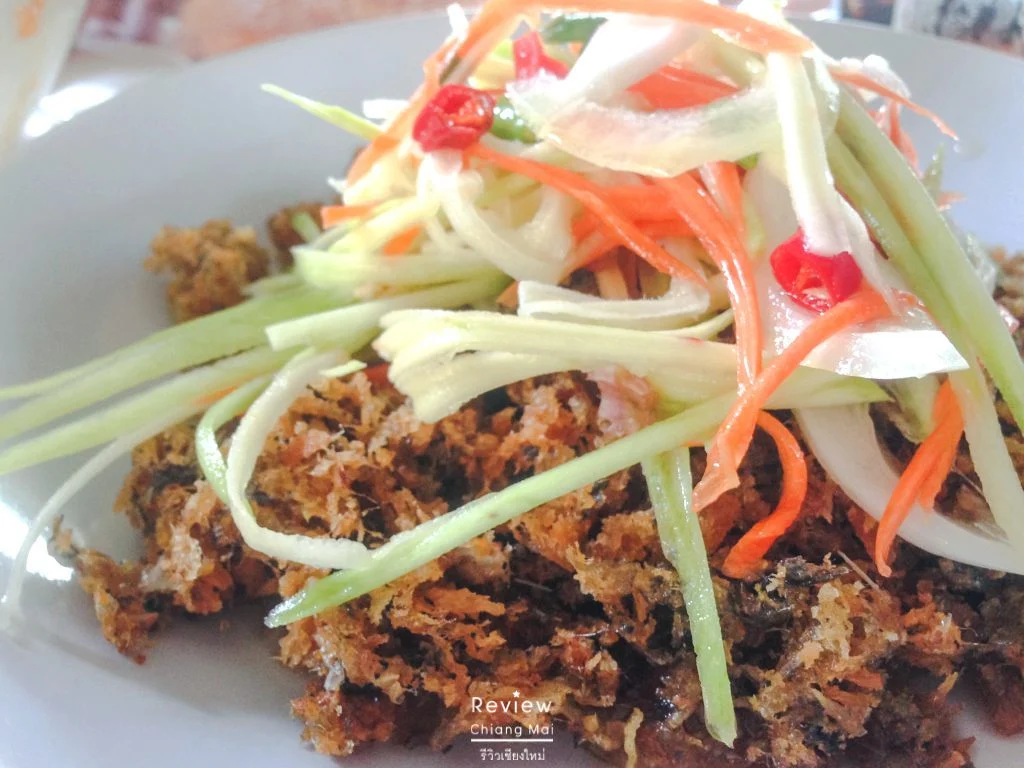 ลองแกงส้มก็หันมาหากระเพราหมูกรอบ ทีเด็ดอยู่ตรงใบกระเพราทอดกรอบที่ทางร้านเอามาใส่ด้วย รวมถึงขนาดของหมูกรอบที่พอดีคำ รวมถึงน้ำกระเพราที่ให้เยอะจนแทบจะกินกับข้าวได้ทั้งจาน หลังจากลิ้มลองกระเพราหมูกรอบไปแล้วเลี้ยวมาตักยำปลาดุกฟู จัดได้ว่าเด็ดไม่แพ้แกงส้ม ทั้งรสชาติของน้ำยำ สัมผัสของเนื้อปลาดุกเรียกได้ว่าโดนใจวัยรุ่นหลายๆ เด้อ