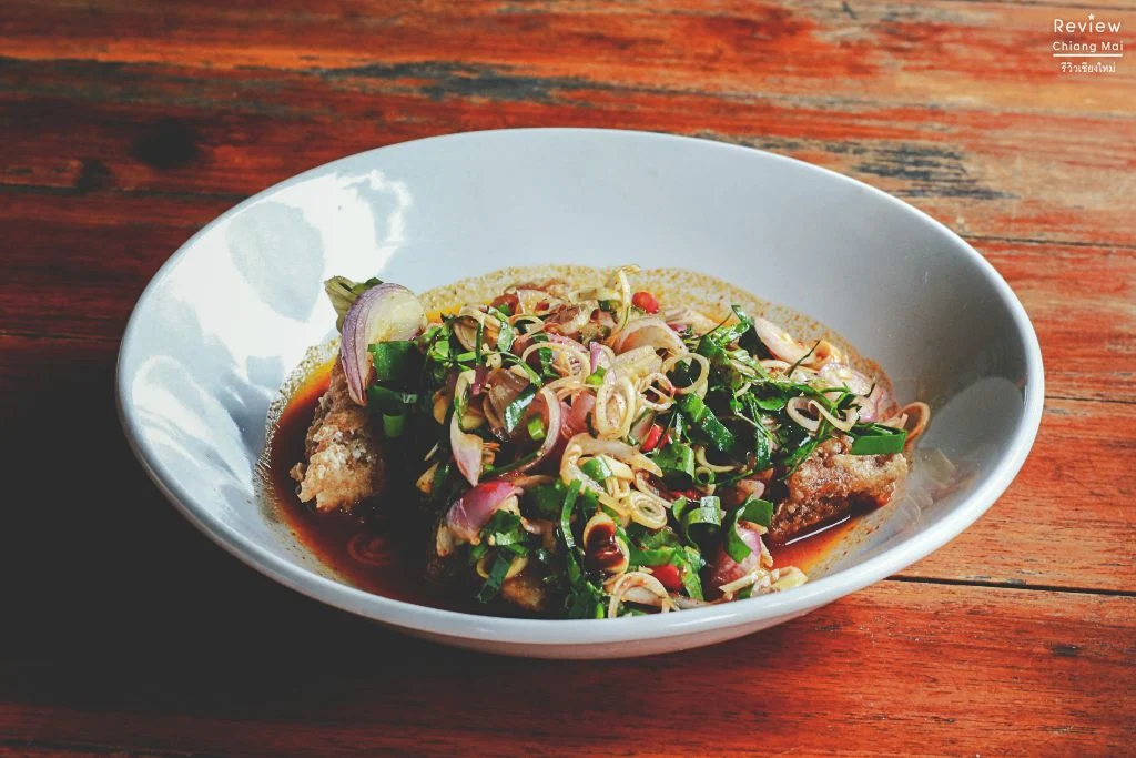 ฟินกับยำปลาดุกฟูได้ซักพัก ก็เอื้อมช้อนไปตักปลาทับทิมราดซอสมะขาม นับว่าให้เป็นที่หนึ่งในดวงใจสำหรับเมนูนี้ ที่รสชาติของน้ำราดซอสมะขามนั้นได้ใจสายกินไปเต็มๆ ที่สำคัญคือไม่หวงเครื่องและปลาเลยซักนิด รวมถึงการทอดปลาของทางร้านไม่มัน ไม่เลี่ยนจนเกินไป เมนูสุดท้ายที่ลองเอามาคลุกข้าวคือปลาทับทิมทอดยำตะไคร้ ที่เหมือนได้ตะไคร้ทั้งสวน และหอมตะไคร้มากกกกกก นับว่าฟินกับไปข้างหนึ่งเลยทีเดียว