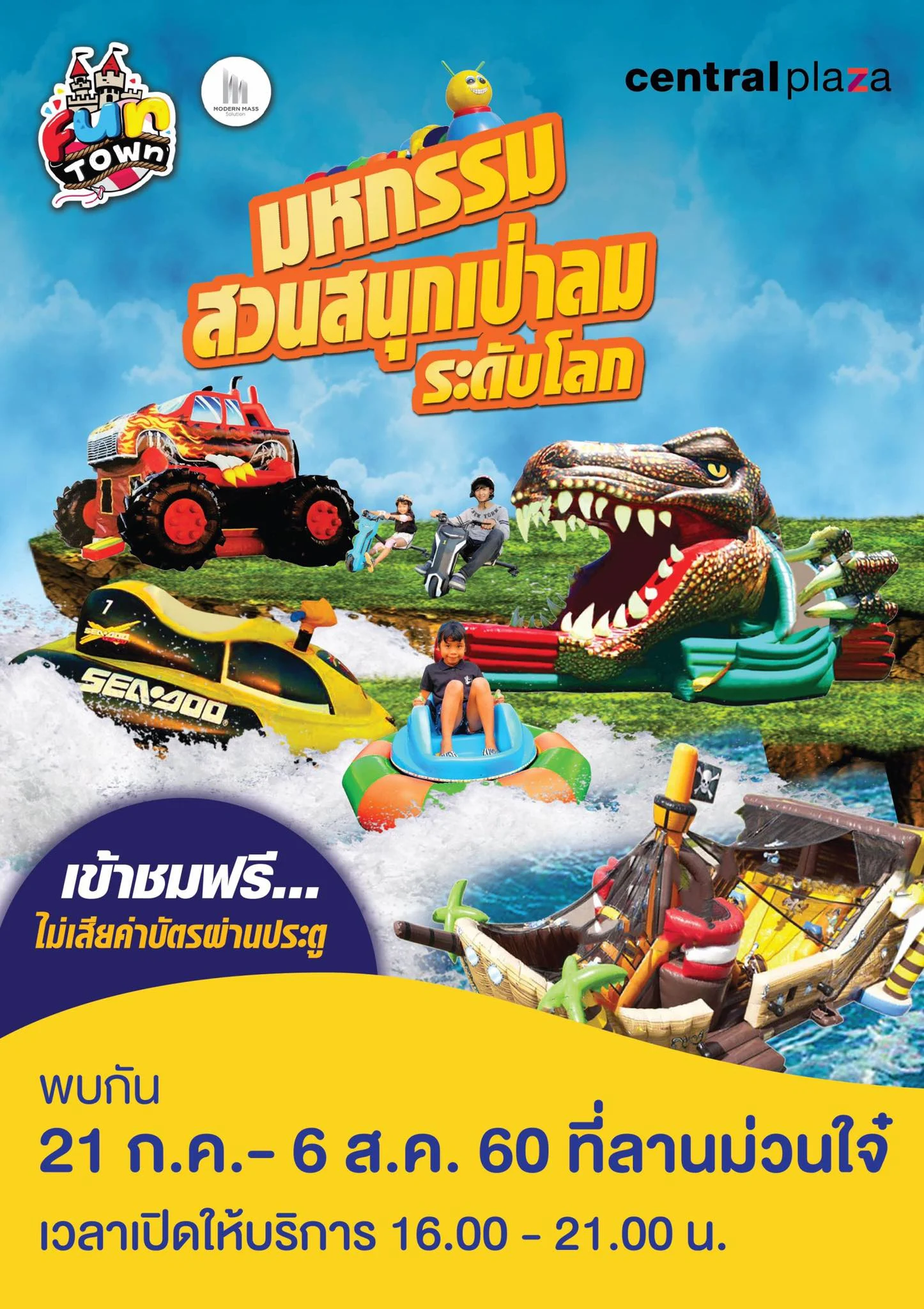 ได้เวลาของเด็กๆแล้ววว พบกับมหกรรมสวนสนุกเป่าลมระดับโลก “Fun Town” สนุกสุดมันส์กับเครื่องเล่นเป่าลมมากมาย เอาใจน้องๆขาลุย!! เริ่มแล้วตั้งแต่วันนี้ – 6 ส.ค. 2560 เวลา 16.00 – 21.00 น. ฟินกันให้สุด!!!! เพียงกดไลค์ และแชร์โพสนี้ รับฟรี! บัตรเครื่องเล่นเรือปลาหมึก