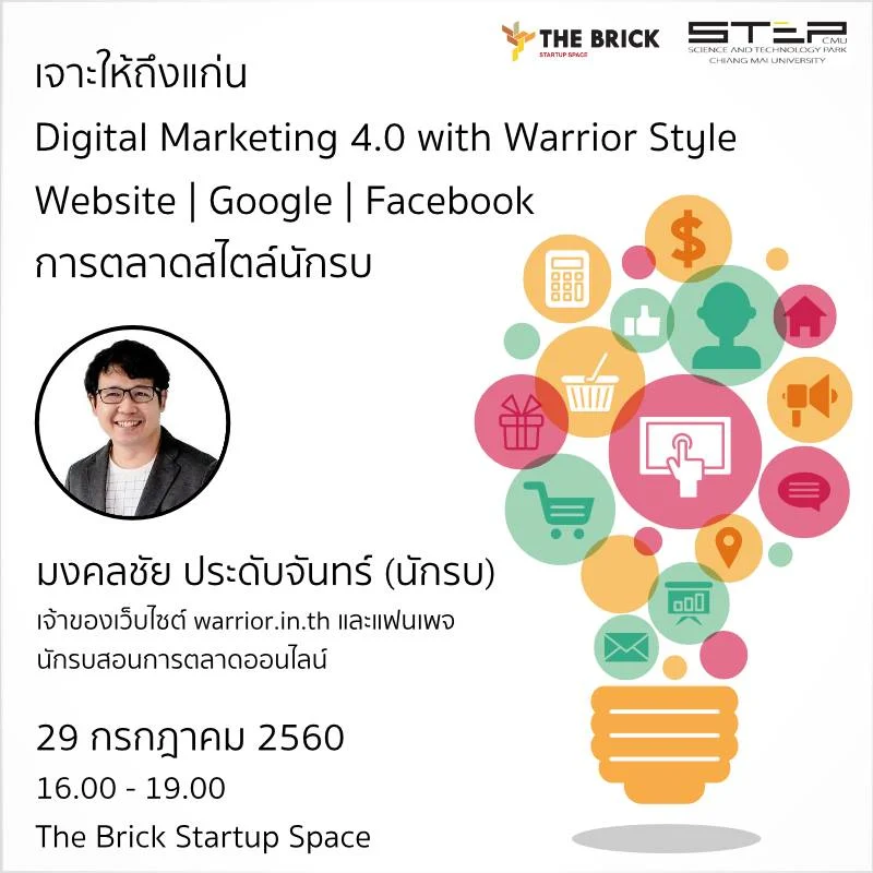 โอกาสดี!! สำหรับชาวเชียงใหม่ที่สนใจ Digital Marketing กับกิจกรรมบรรยายสุดพิเศษ “เจาะให้ถึงแก่น Digital Mattering 4.0 with Warrior Style” โดย คุณมงคลชัย ประดับจันทร์ (คุณนักรบ) เจ้าของบริษัทให้บริการด้าน