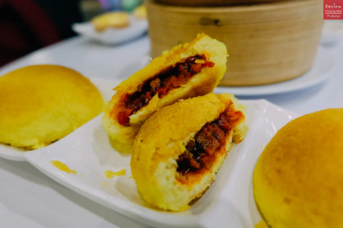 ไส้ทะลักอีกแล้ว! ซาลาเปาไส้หมูแดงอบ (เป็นเมนูสุดฮิต) มีความหอมละมุนกับเนยและไข่ที่ใช้ผสมกับแป้ง รสชาติกำลังพอดี ไม่หวานจนเกินไป เนื้อแป้งเนียน กรอบตรงผิว แต่นุ่มตรงที่หุ้มไส้หมูแดงไว้