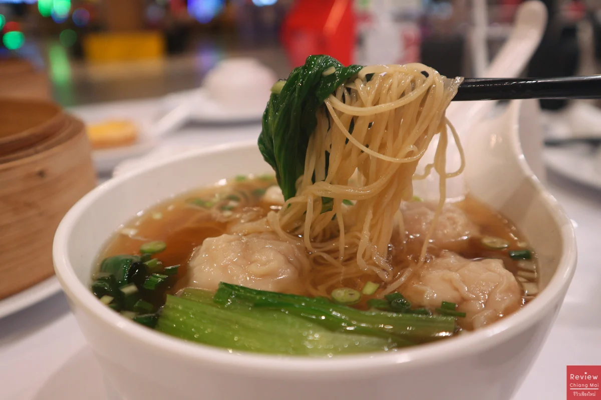 บะหมี่เกี๊ยวกุ้ง กัดคำไหนก็เจอกุ้งแน่ๆ เส้นเล็กนำมาจากเยาวราช บวกกับความบางของแป้งเกี๊ยวที่ห่อกุ้งเน้นๆ น้ำซุปกลมกล่อมเหมือนนั่งซดอยู่ที่ฮ่องกงอย่างไรอย่างนั้นเลย