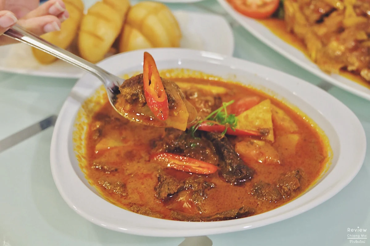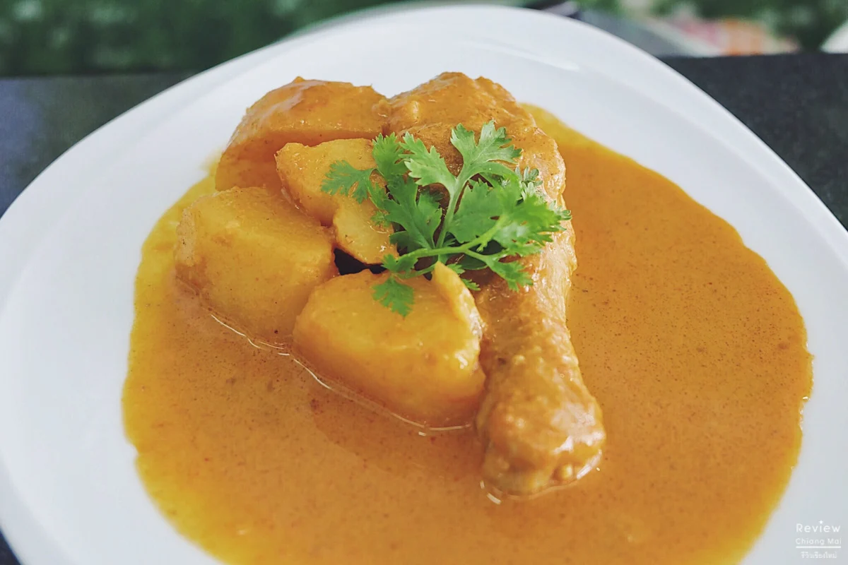 มัสมั่นไก่ สูตรเด็ดจากมาเลเชีย ความอร่อยอยู่ตรงน้ำแกง หอมเครื่องเทศ ไม่เลี่ยนมาก มันฝรั่งร้อนๆ นุ่มๆ ละลายในปาก ทานคู่กับข้าวสวย หรือสั่งแยกมาทานกับข้าวมันไก่สิงคโปร์ก็อร่อยได้เหมือนกัน…