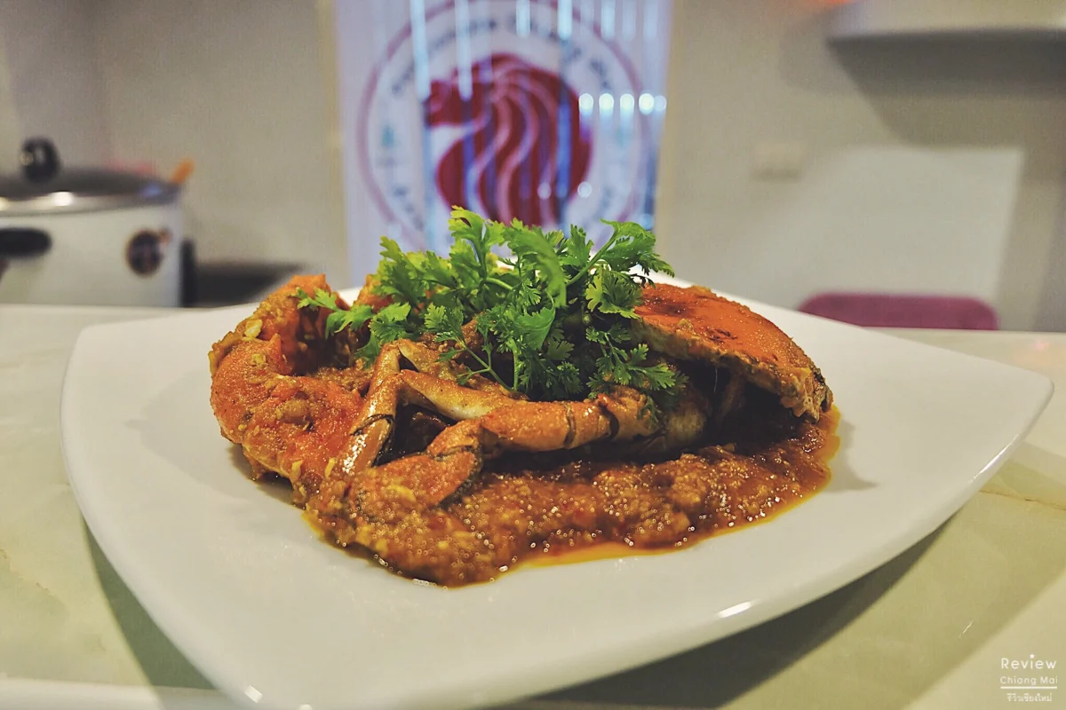 Singapore Chili Crab เมนูปูสุดฟิน ที่มีชื่อไทยว่า ปูผัดพริกสไตล์สิงคโปร์ ปูสดตัวโตที่สั่งตรงมาจากภูเก็ตแบบวันต่อวัน วิธีผัดและการปรุงตามสูตรสิงคโปร์แท้ เนื้อปูสดมาก หวาน หอม เนื้อแน่น รับประทานกับข้าวสวยร้อนๆ ถูกปากคนไทยแน่นอน เมนูนี้รับประกันเลยครับ