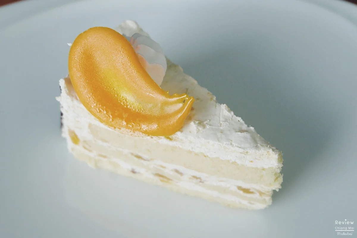Cempedakหรือจำปาดะ เค้กหาทานยาก ด้านบนสีเหลืองนั้นเป็นผลไม้คล้ายขนุน ชื่อว่า จำปาดะ ผลของมันใช้ทำอาหารได้หลายอย่าง มีกลิ่นหอมและรสหวาน ประโยชน์หลักๆ เลยคือ มีเส้นใยอาหารสูง (Fiber) เป็นเค้กที่เรียกว่ากินอร่อยแล้วมีประโยชน์ด้วย