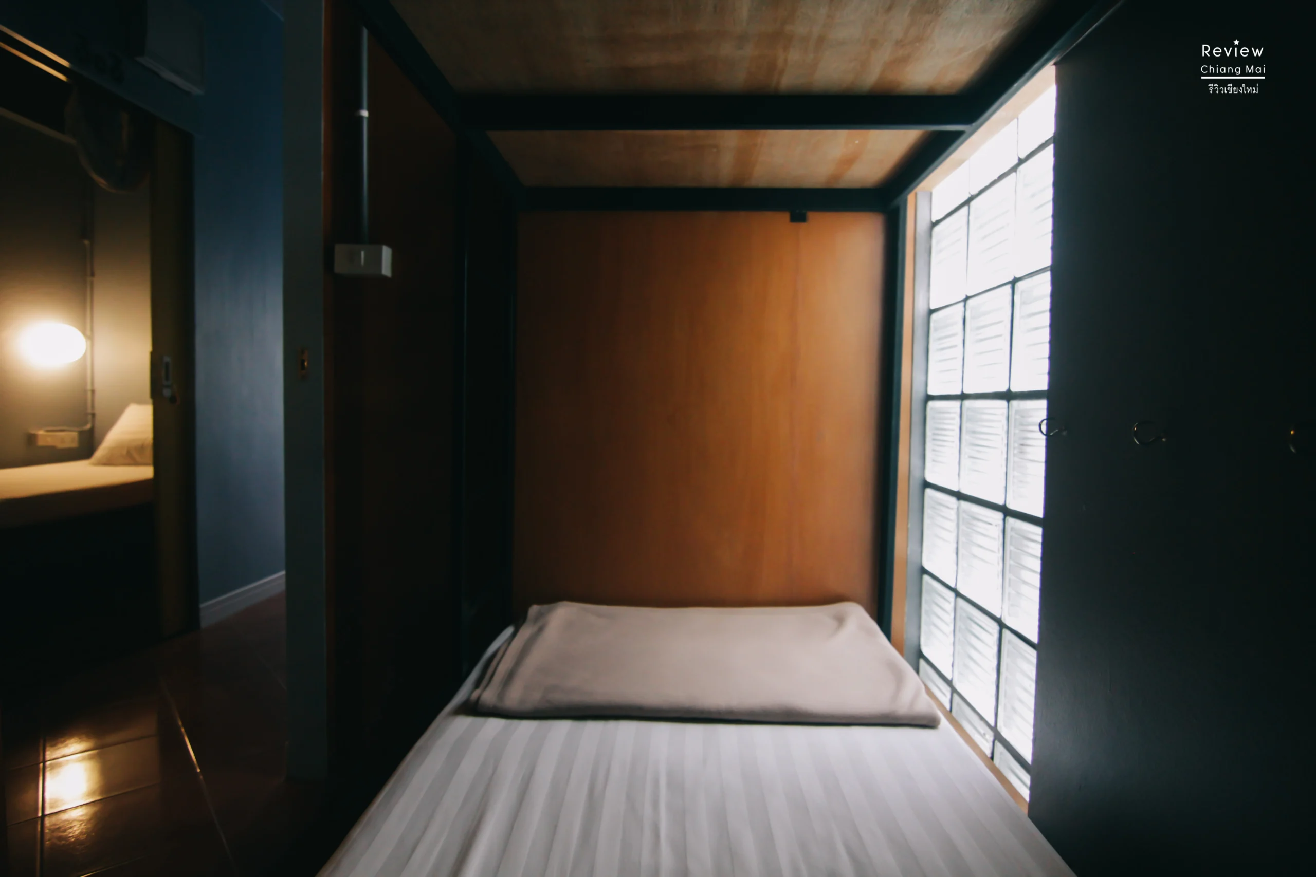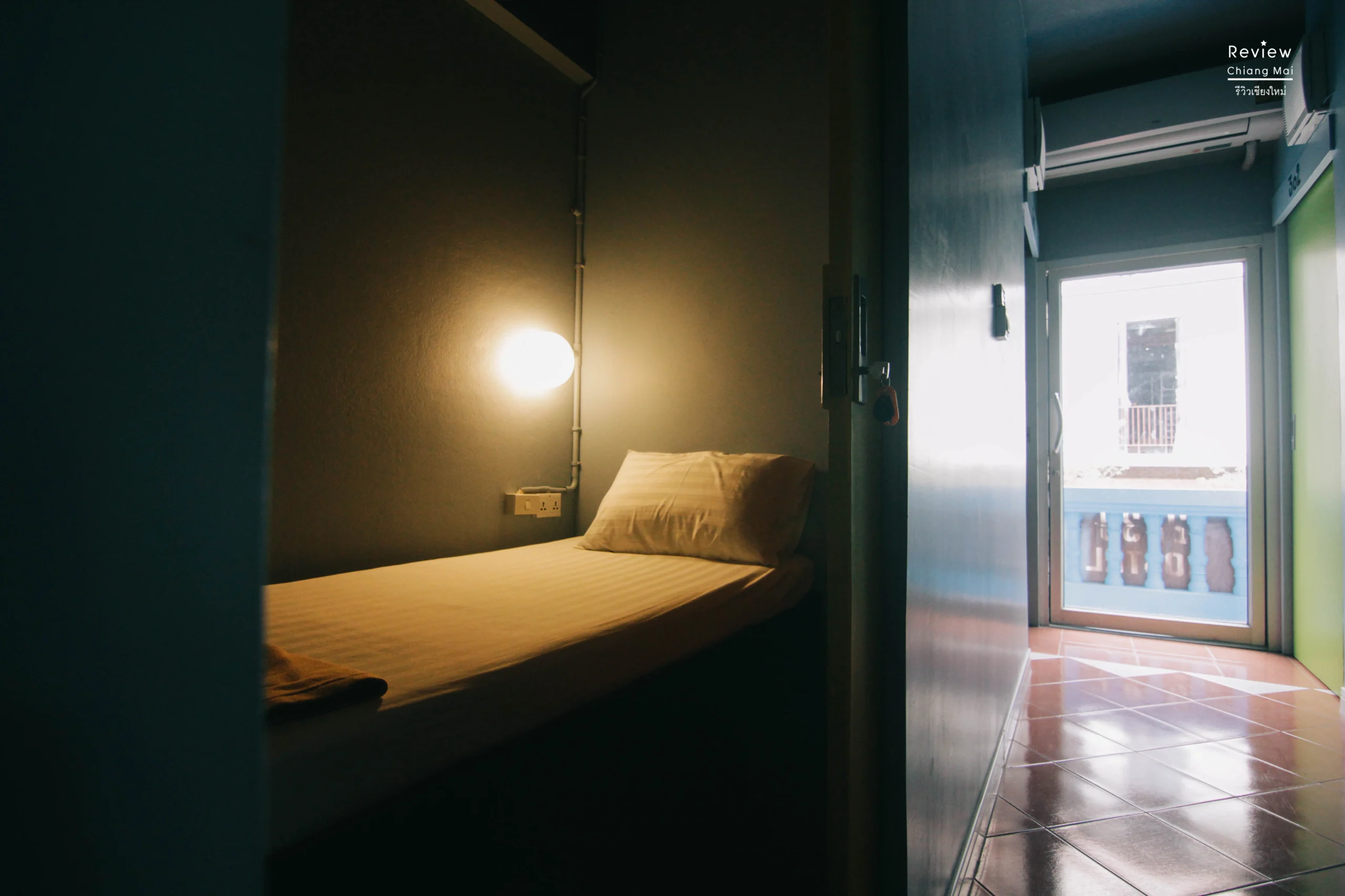 ห้องแรกเป็นห้องพักแบบเตียงเดี่ยว สำหรับนักเดินทางที่เดินทางคนเดียว (แปลว่านอนคนเดียว)อิอิ จะนอนกี่คนหละ ราคาอยู่ที่ 330 บาท/คืน เราว่าข้อดีของมันคือไม่ต้องวุ่นวายกับใครเลย ใส่กระเป๋าใต้เตียง ปิดประตูนอน และทบทวนกับตัวเองก่อนคืนนี้จะผ่านไปและเริ่มต้นใหม่ในวันต่อมา