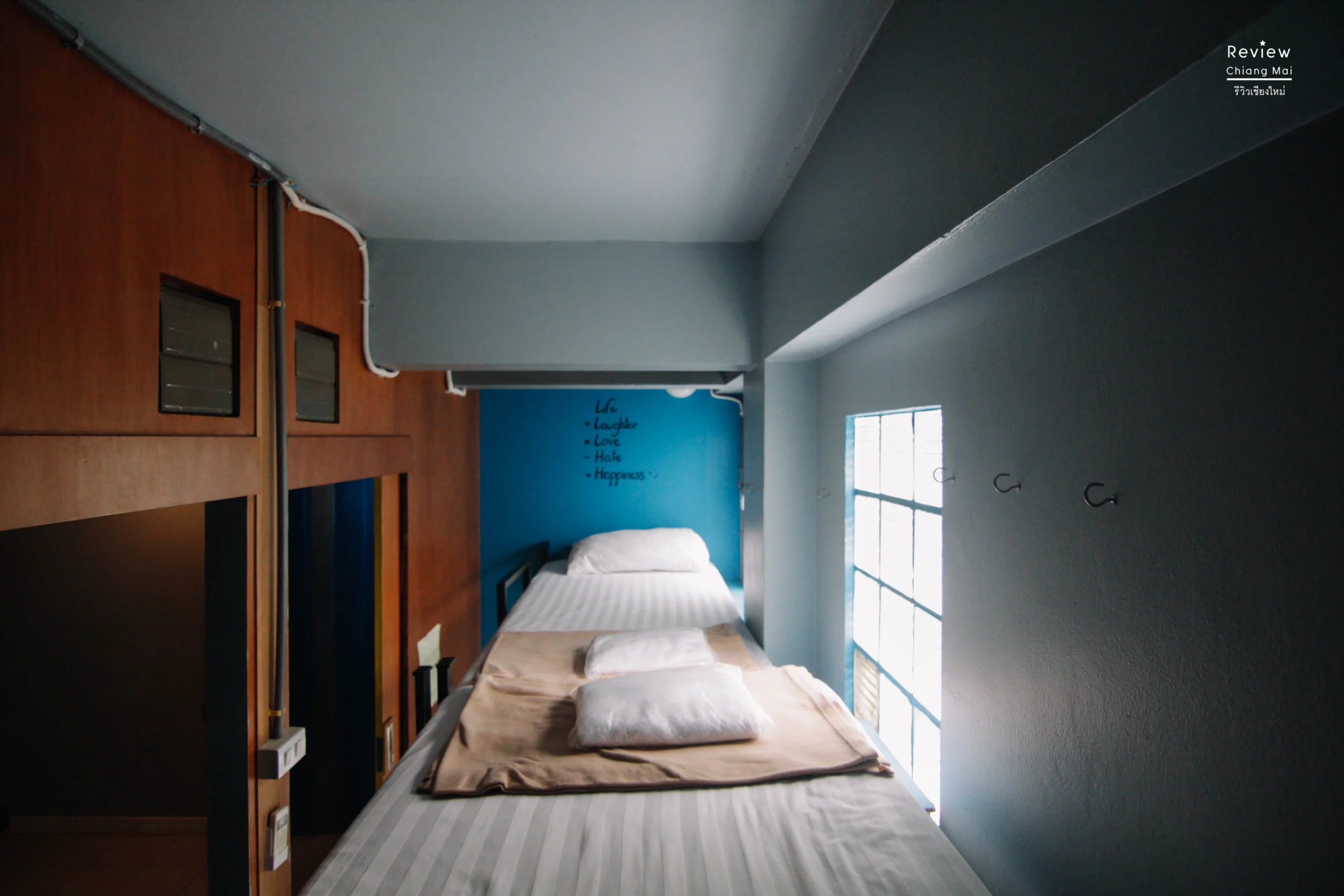 ห้องแรกเป็นห้องพักแบบเตียงเดี่ยว สำหรับนักเดินทางที่เดินทางคนเดียว (แปลว่านอนคนเดียว)อิอิ จะนอนกี่คนหละ ราคาอยู่ที่ 330 บาท/คืน เราว่าข้อดีของมันคือไม่ต้องวุ่นวายกับใครเลย ใส่กระเป๋าใต้เตียง ปิดประตูนอน และทบทวนกับตัวเองก่อนคืนนี้จะผ่านไปและเริ่มต้นใหม่ในวันต่อมา