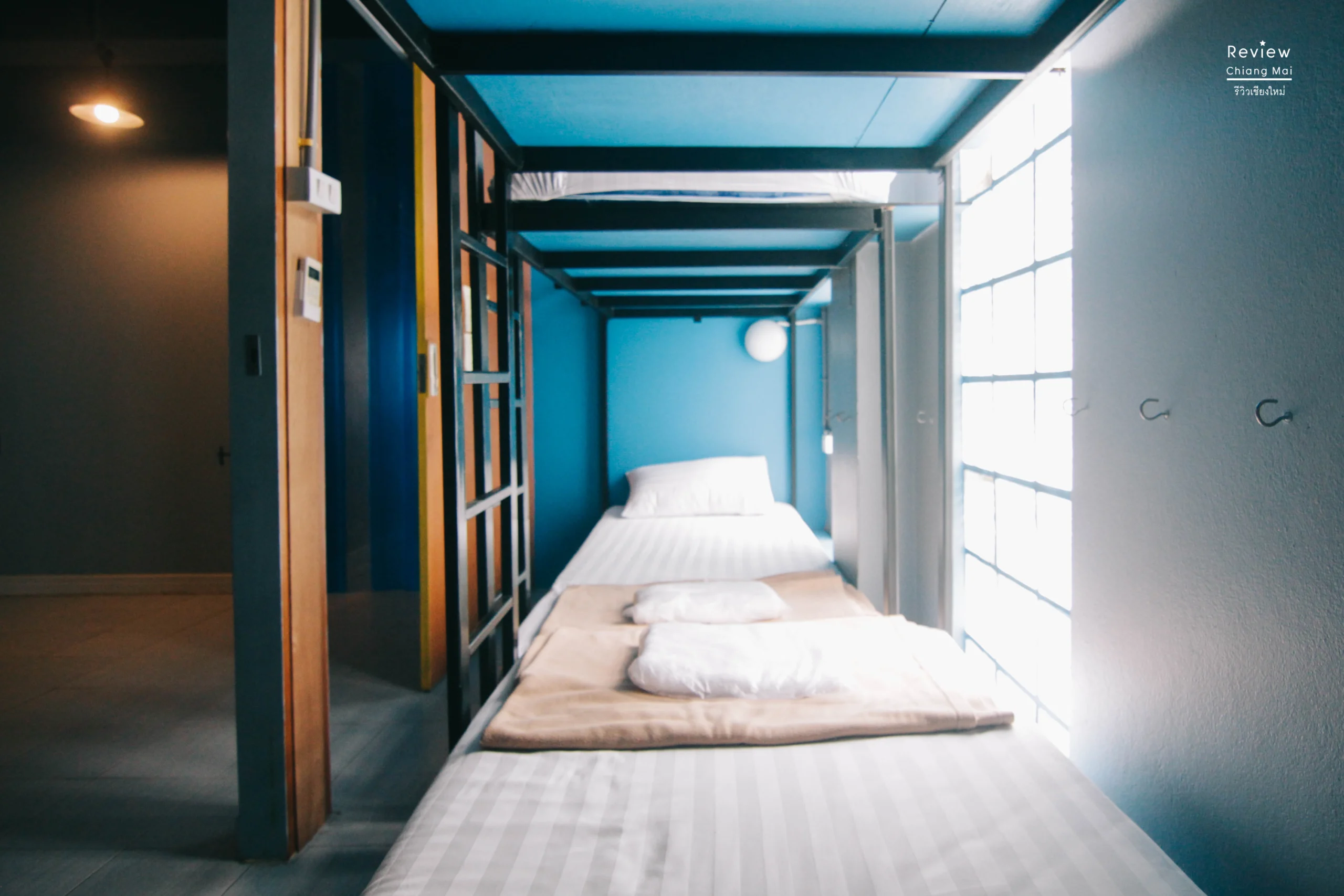 ห้องที่สอง เป็นเตียงคู่ เราว่ามันเหมาะสำหรับเพื่อนที่ชอบเดินทางด้วยกัน พุดคุยกันได้ทั้งคืน หรือถ้าคุณมีคนรักที่อยากจะใช้เวลาด้วยกัน แต่ลำบากใจจะนอนด้วยกัน เตียงสองชั้นก็เป็นตัวเลือกที่ดีที่เราได้ใช้เวลาด้วยกัน และยังมีพื้นที่ของกัน เพราะในความสัมพันธ์บางครั้งเราก็ยังต้องการพื้นที่ของตัวเองจริงไหม (550 บาท/คืน)