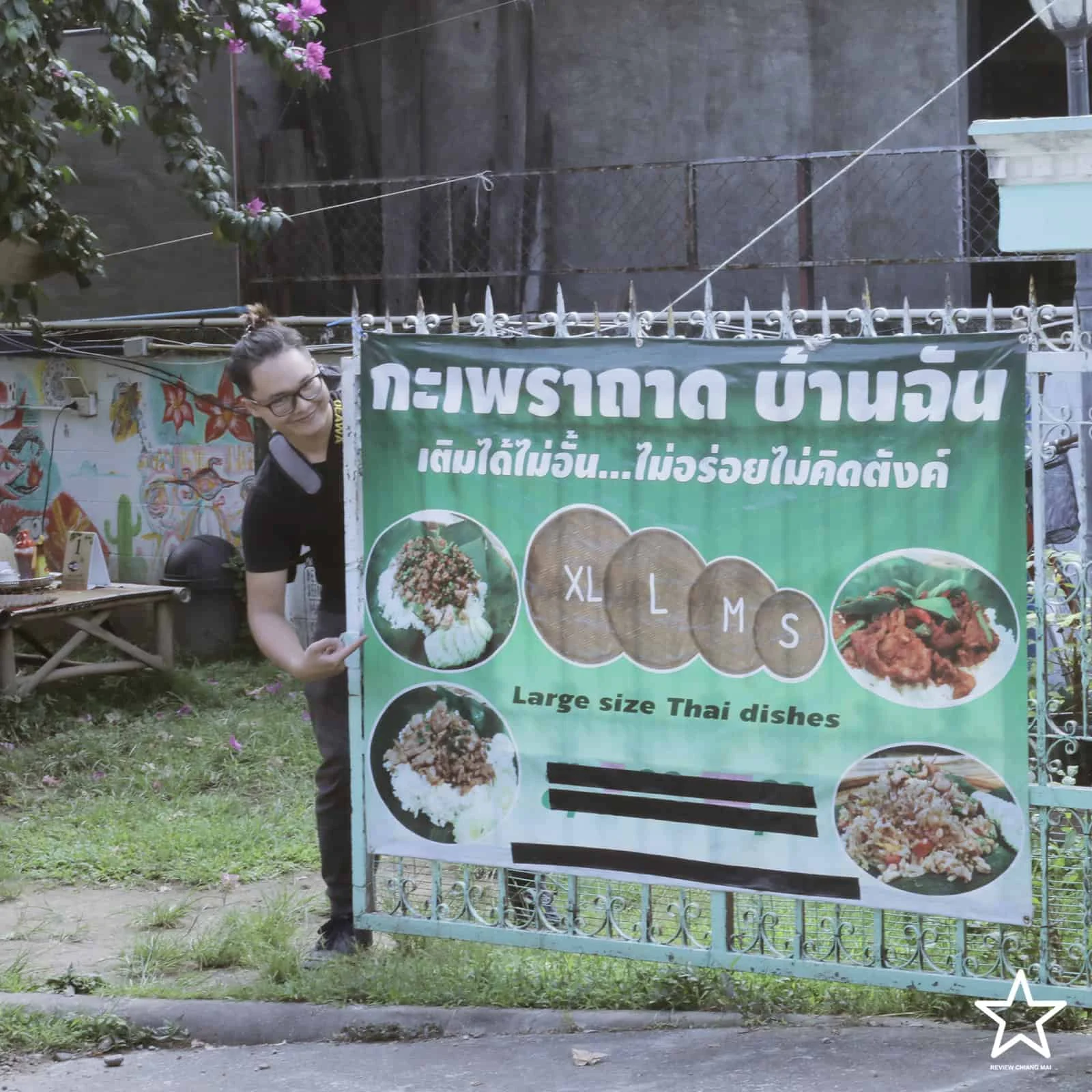 ใส่จานยังธรรมดาไป ไซส์นี้ต้องมาในกระด้ง ในวันนี้น้องเหยาจะไปท้ากินข้าวกะเพราไซส์ยักษ์ในย่านสวนดอก ที่นอกจากผัดกะเพราแล้วยังมีเมนูอื่นๆ ให้สั่งได้ตามใจชอบ แต่ไฮไลท์เลยคือกะเพรากระด้งไซส์ยักษ์ ที่เสิร์ฟมาบนใบตองใส่กระด้ง แถมถ้าใครทานหมดได้ภายใน 30 นาที ได้ทานฟรีไปเลย!!! แต่ถ้าทานไม่หมดจ่าย 200 นะเธอออ