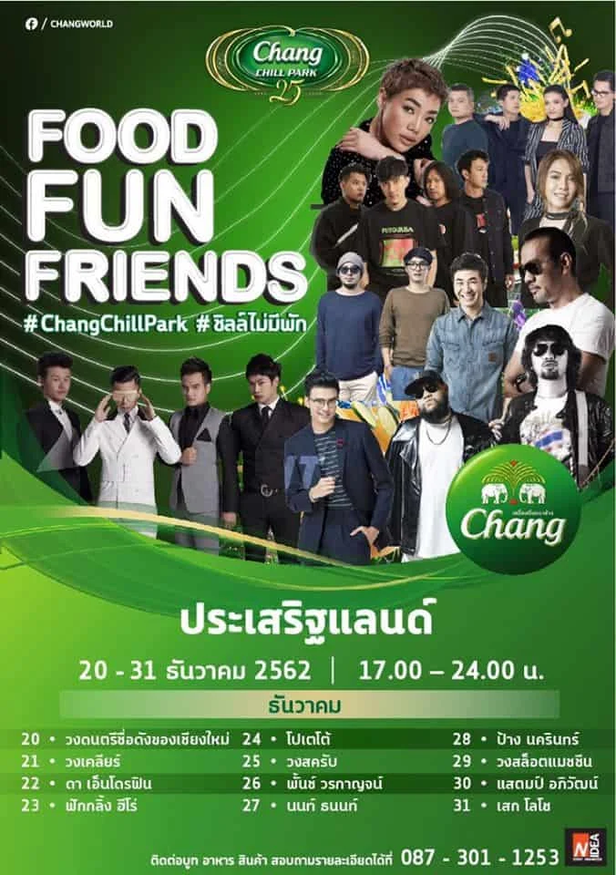 พร้อมกับศิลปินชื่อดังของเมืองไทยที่จะมาสร้างรอยยิ้มให้คุณกับเพื่อน พร้อมกับอาหารอร่อยมากมายในเดือนสุดท้ายของปี..แล้วชวนเพื่อนมาชิลล์กัน