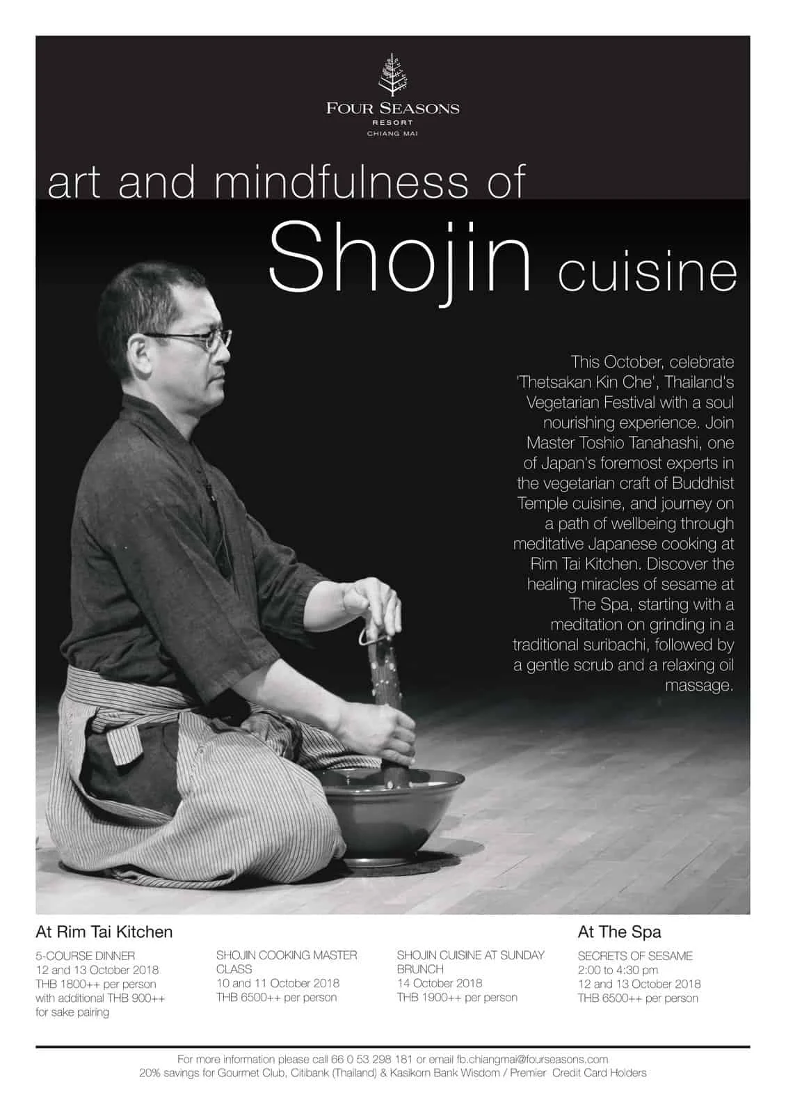 โปรโมชั่นส์ต้อนรับเทศกาลกิ นเจที่คนรักสุขภาพ ชาวมังสวิรัตและวีแกนทั้ งหลายพลาดไม่ได้ “Art & Mindfulness of Shojin Cuisine” ที่โฟร์ซีซั่นส์รีสอร์ท เชียงใหม่ ตั้งแต่วันที่ 10 – 14 ตุลาคมนี้