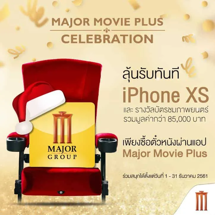 Major Movie Plus Celebration ลุ้นรับทันที i Phone XS และรางวัลบัตรชมภาพยนตร์รวมมูลค่ากว่า 85,000 บาท