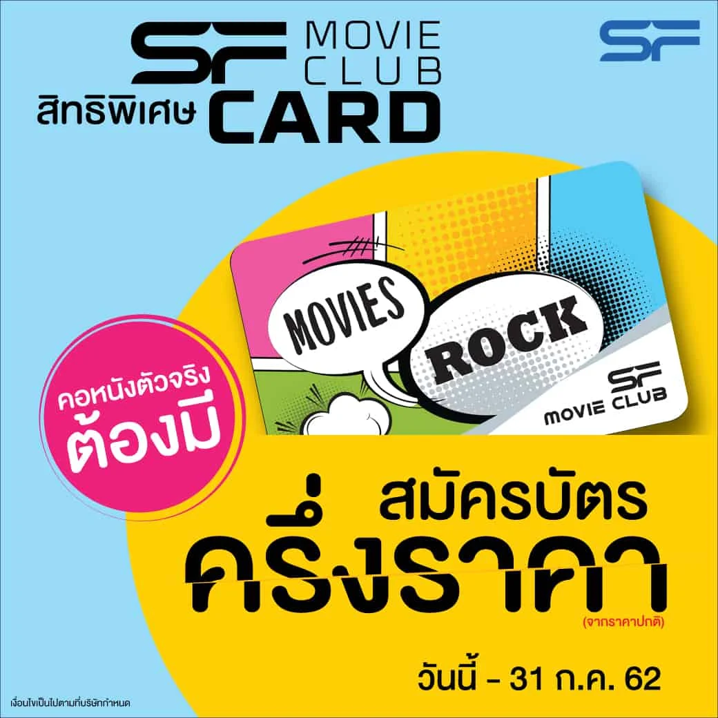 สมัคร SF Movie Club Card ทุกประเภท เพียงครึ่งราคา (จากราคาปกติ)