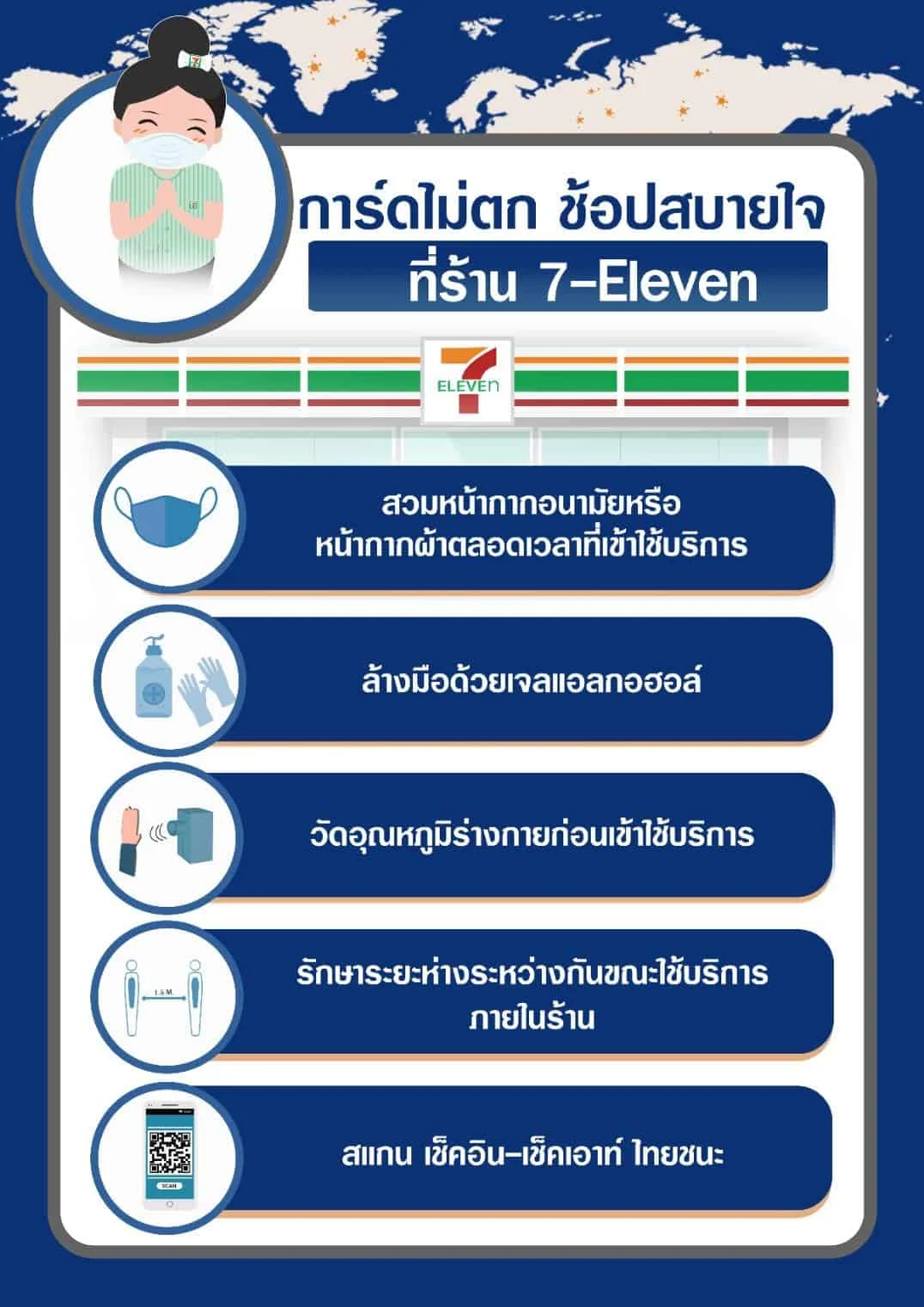 เพื่อเคียงข้างทุกคนในสังคมให้ผ่านพ้นวิกฤตครั้งนี้ไปด้วยกัน นายวิชัย จันทร์จริยากุล กรรมการผู้จัดการ (ร่วม) บมจ. ซีพี ออลล์ กล่าวว่า บริษัทฯ ได้กำชับไปยังร้านสาขาทุกแห่งในพื้นที่ทั้ง 18 จังหวัดโดยทันที ให้เตรียมพร้อมสำหรับการให้บริการโดยปฏิบัติตามมาตรการของ ศบค. อย่างเคร่งครัด พร้อมกันนี้ให้คุมเข้มมาตรการป้องกันการแพร่ระบาดที่ได้ดำเนินการมาโดยตลอด เพื่อสุขภาพอนามัยของพนักงาน และลูกค้าที่มาใช้บริการ “ร้านเซเว่นในพื้นที่ควบคุมสูงสุด 18 จังหวัดจะเปิดให้บริการเวลา 04.00 – 23.00 น. โดยเริ่มตั้งแต่วันที่ 18 เมษายนนี้เป็นต้นไป นอกจากนี้ ยังจะเข้มงวดกับมาตรการป้องกันการแพร่ระบาดของโรคโควิด – 19 ที่ได้ดำเนินการมาโดยตลอด ไม่ว่าจะเป็นการสวมหน้ากากอนามัย การวัดอุณหภูมิร่างกายของผู้ปฏิบัติงาน และผู้มาใช้บริการ การเว้นระยะห่าง การล้างมือก่อนหยิบจับอาหารหรือสินค้า การทำความความสะอาดพื้นที่ อุปกรณ์ในร้าน รวมทั้งจุดสัมผัสร่วมตามระยะเวลาที่กำหนด และการจำกัดจำนวนผู้เข้าใช้บริการตามขนาดของร้าน ทั้งนี้เพื่อความปลอดภัยของพนักงาน และลูกค้า เพราะร้านเซเว่นดำเนินธุรกิจควบคู่กับการดูแลสังคม ชุมชนอย่างต่อเนื่อง ดังนั้นเพื่อบรรเทา และแก้ปัญหาการแพร่ระบาดของโรคซึ่งทุกคนต้องเผชิญอยู่ขณะนี้ ร้านเซเว่นจึงให้ความสำคัญกับเรื่องความปลอดภัยอย่างมาก” นายวิชัย กล่าว