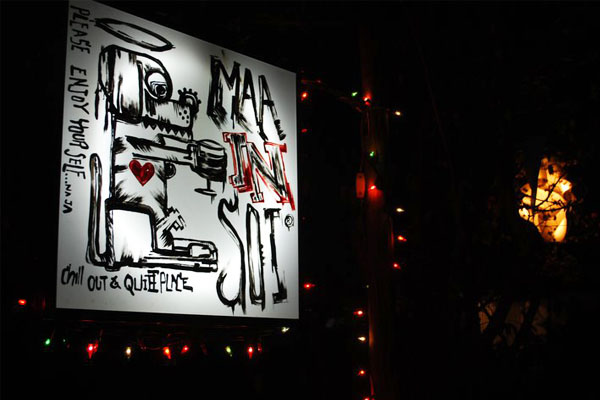 แค่ได้ยินชื่อร้านก็แทบสะดุ้งเสียวสันหลังวาบว่าจะโดนหมาไล่รึเปล่า นับว่าเป็นอีกร้านที่ตั้งชื่อได้ค่อนข้างแปลก เพราะชื่อนี้คุณชลธิชา เจ้าของร้านบอกกับเราว่า ไม่ได้เลือกตั้งเป็นชื่อเฉพาะเหมือนร้านอื่นๆ แต่เลือกชื่อนี้เพราะในซอยที่ร้านตั้งอยู่หมามันเยอะ! “แต่ก่อนในซอยหมามันเยอะ เพราะมันมีแคมป์คนงานใกล้ๆนั้นเขาเลี้ยงหมาไว้ อีกอย่างตอนแรกๆที่ร้านขายเหล้าหมาใจดำด้วยค่ะ” ถือว่าเป็นไอเดียที่แปลกและน่าสนใจที่นำเอาบรรยากาศของบริเวณร้านมาตั้งเป็นชื่อร้าน ส่วนชื่อก็แล้วแต่คนจะเรียก คือได้ทั้ง หมาในซอย และหมาอินซอย