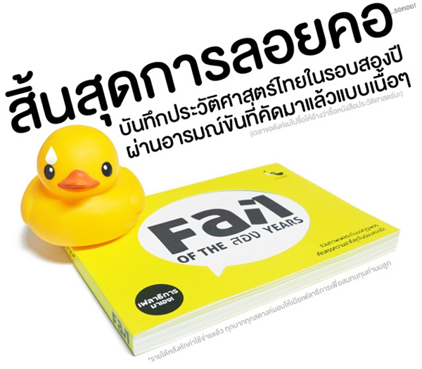 ใช่แล้วครับ มันหนังสืออะไรว่ะ เล่มยาวๆสีเหลืองอ่อย แผ่ปกแบหรา มีคำโปรยตัวโตๆว่า “Fail of The สอง Years” มุมขวาบนของเล่ม มีรูปตราเป็ดเหงื่อตกคาบปลาแซลมอน แถมด้านหลังเล่มมีสโลแกน “เราจริงจังกับเรื่องเล่นๆ”