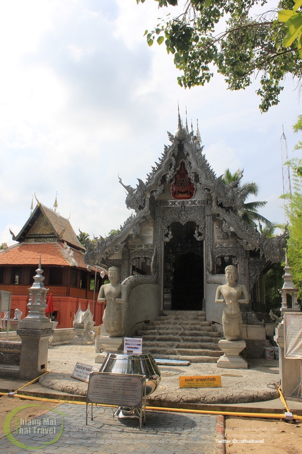 มีแนวประเพณีล้านนาเป็นศิลปะตัวชูโรง ด้านในพระอุโบสถเงินเป็นที่ประดิษฐานพระพุทธปาฏิหาริย์ (พระเจ้าเจ็ดตื้อ)