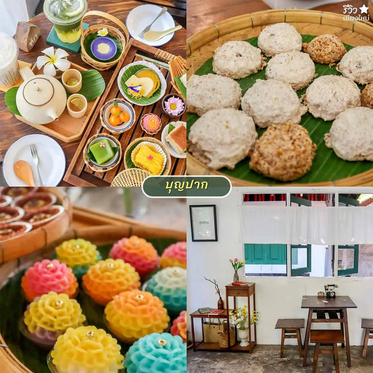 ชวนมา Afternoon Tea แบบไทยๆ ที่ บุญปาก Thai Dessert & Tea ร้านขนมหวานที่ทำขนมหวานได้รสชาติกลมกล่อม ไม่หวานมาก ขนมทำสดใหม่ทุกวัน ขนมหายากทางร้านก็มีนะคะ เช่น โสมนัส ผกากรอง ทองเอก และขนมอื่นๆ อีกมากมาย กินกับน้ำชาอุ่นๆ เข้ากันสุดๆ บรรยากาศรอบอุ่นเหมือนนั่งทานอยู่บ้าน สงบ พนักงานดูและดี แวะมาชิมกันได้น้าาา