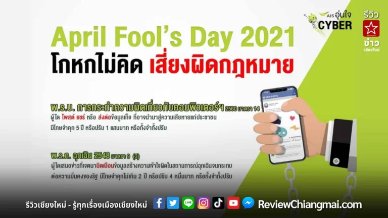 AIS อุ่นใจCyber ที่ให้ความสำคัญกับการส่งเสริมการใช้ออนไลน์อย่างถูกวิธี ในฐานะเพื่อนคู่คิดดิจิทัลของคนไทย จึงขอเป็นอีกหนึ่งพลังสำคัญร่วมเตือนคนไทยให้ใช้ออนไลน์อย่างมีสติ ไม่นำเข้าข้อมูลอันเป็นเท็จที่อาจจะก่อให้เกิดความเข้าใจผิด พร้อมกับเช็คข้อมูลให้ชัวร์ก่อนส่งต่อเสมอ โดยเฉพาะอย่างยิ่งในวันที่ 1 เมษายน เพราะไม่เช่นนั้นอาจเกิดความผิดฐานนำเข้าสู่ระบบคอมพิวเตอร์ซึ่งข้อมูลคอมพิวเตอร์อันเป็นเท็จ ตาม “พ.ร.บ.คอมพิวเตอร์ มาตรา 14 ปี 2560” ว่าด้วยการกระทำความผิดเกี่ยวกับคอมพิวเตอร์ฯ