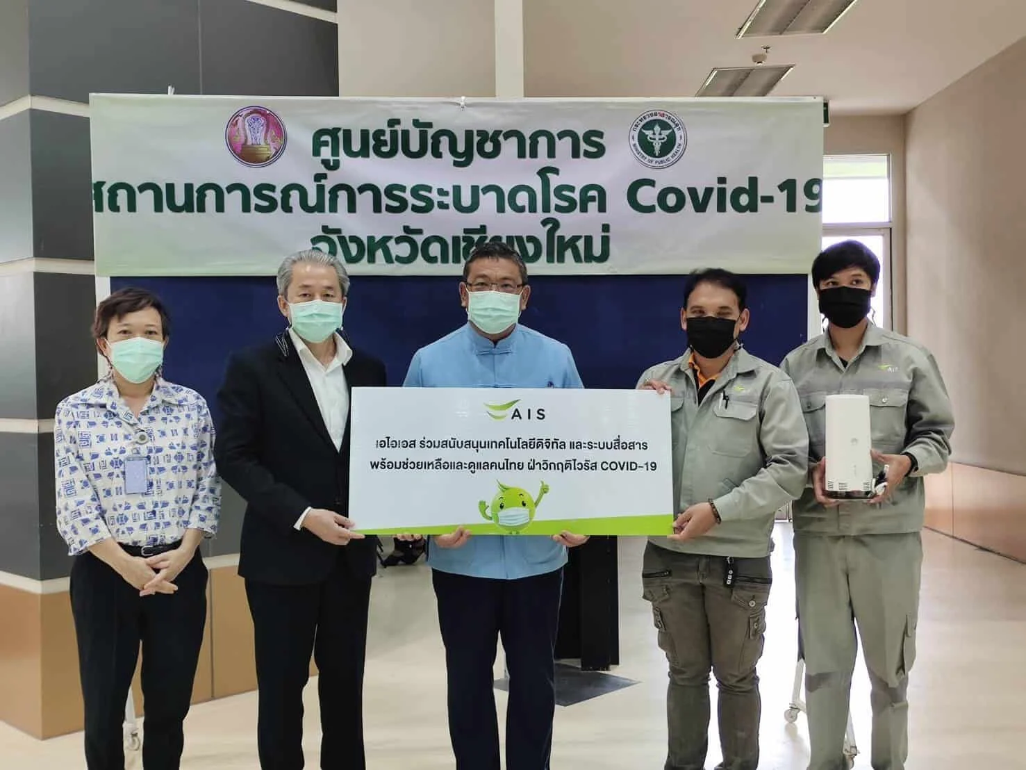 โดยในวันนี้ ที่ศูนย์บัญชาการสถานการณ์การระบาดโรค COVID-19 จ.เชียงใหม่ นายเจริญฤทธิ์ สงวนสัตย์ ผู้ว่าราชการจังหวัดเชียงใหม่ พร้อมด้วย นายแพทย์ จตุชัย มณีรัตน์ นายแพทย์สาธารณสุขจังหวัดเชียงใหม่ ได้รับมอบอุปกรณ์ AIS5G FWA (5G Fixed Wireless Access) จำนวน 3 ชุด เพื่อนำไปสนับสนุนการปฏิบัติภารกิจของบุคลากรทางการแพทย์และเจ้าหน้าที่สาธารณสุขในพื้นที่โรงพยาบาลสนามจังหวัดเชียงใหม่ พร้อมกล่าวว่า