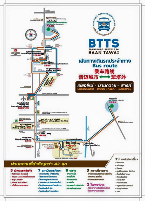โดยรถประจำทางสายนี้จะมีต้นทางคือ อำเภอสารภีและจะไปสุดสายที่สถานีขนส่งช้างเผือก โดยระหว่างทางรถจะจอดที่สถานที่สำคัญอีกจุดคือ บ้านถวาย แต่ระหว่างเส้นทางเราสามารถบอกให้หยุดรถได้ที่จุดต่างๆตามชุมชน รวมไปถึงป้ายรถเมล์ ที่สำคัญคือจะผ่านสนามบินทั้งขาเข้าเมืองและขากลับ ทำให้สะดวกต่อนักท่องเที่ยว ซึ่งโครงการนี้ได้ปฐมฤกษ์เดินเส้นทางวันแรกไปแล้วเมื่อวันที่ 23 พ.ย. ที่ผ่านมา
