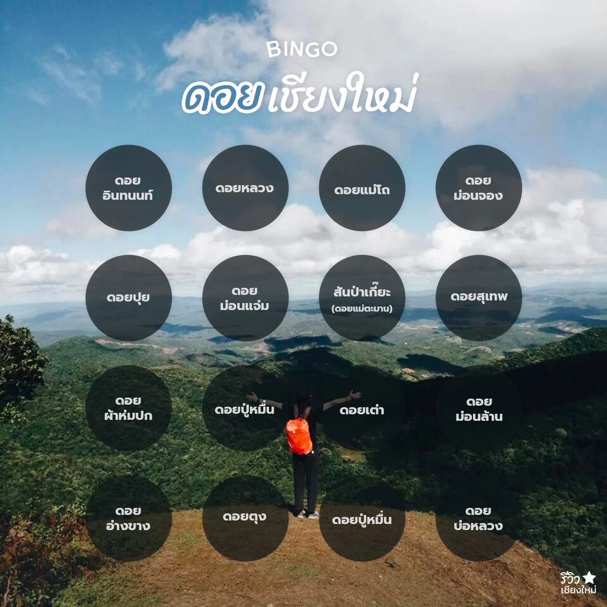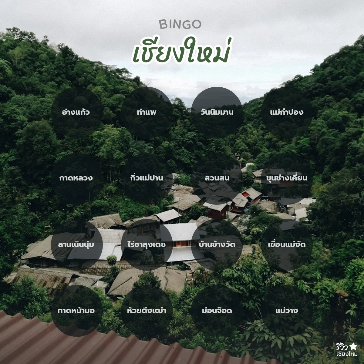 BINGO สำหรับคนชอบเที่ยว 22/5/2022 Revew ที่เที่ยว 37 Share on FacebookFacebookXXLINELine มาเล่นกันจ้า BINGO สำหรับคนที่ชอบเที่ยวช่วงนี้ฮิตหลายที่เลย มาเช็คกันว่าได้แต้มเท่าไหร่ ใครไม่เคยไปก็ตามเก็บเลยเน้อ มาเช็คกันว่าได้แต้มเท่าไหร่ แลนด์มาร์คน่าเที่ยว / ดอยสุดฟิน / คาเฟ่ห้ามพลาด / ร้านเหล้ายอดฮิต ใครเก็บไม่หมดต้องตามแล้วน้า ห้ามพลาด บิงโก บิงโกเชียงใหม่