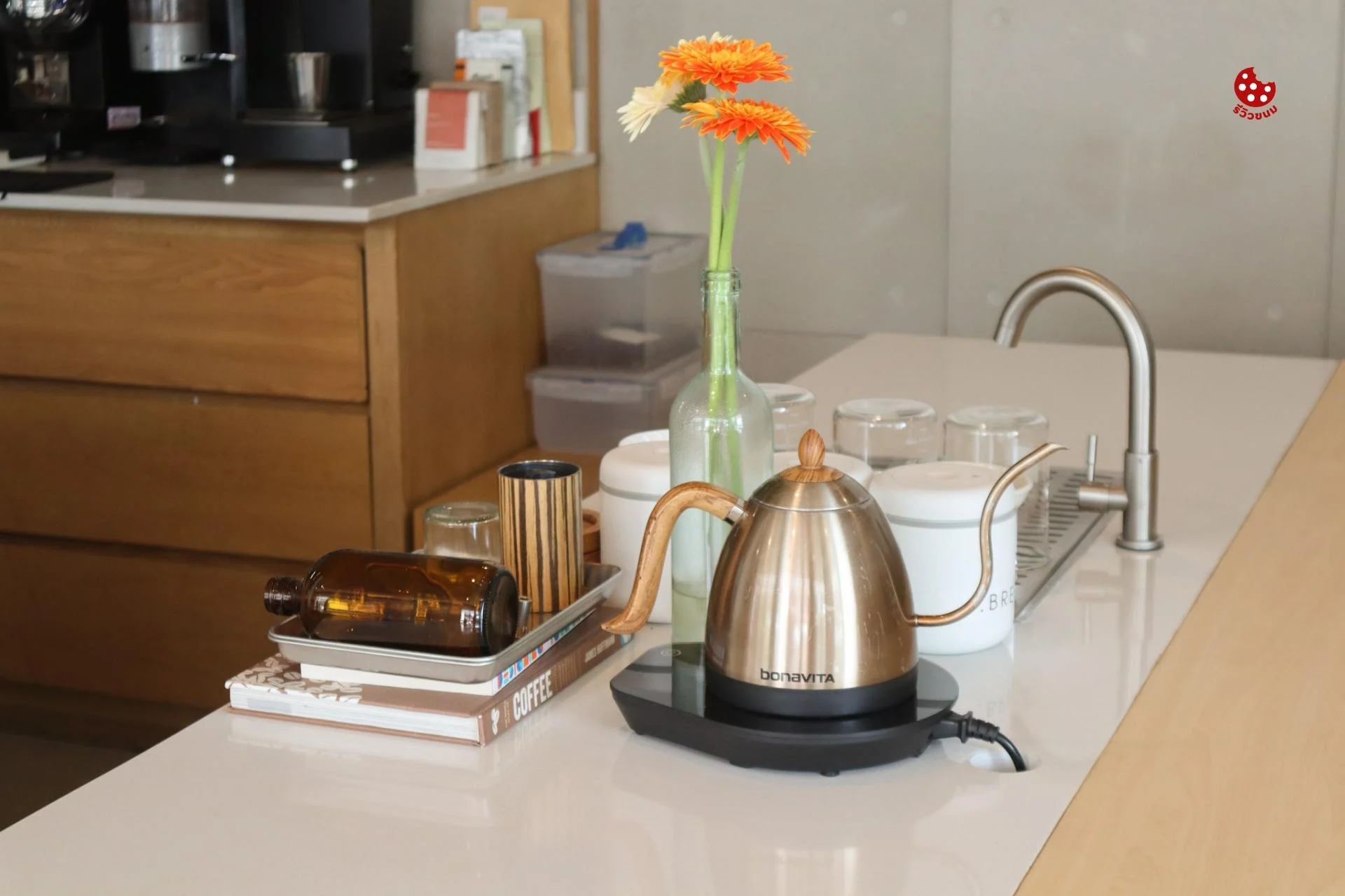 โชว์หน้าเคาท์เตอร์บาร์ให้เห็นวิธีการทำอีกด้วยย หอมกลิ่นกาแฟมากกกก