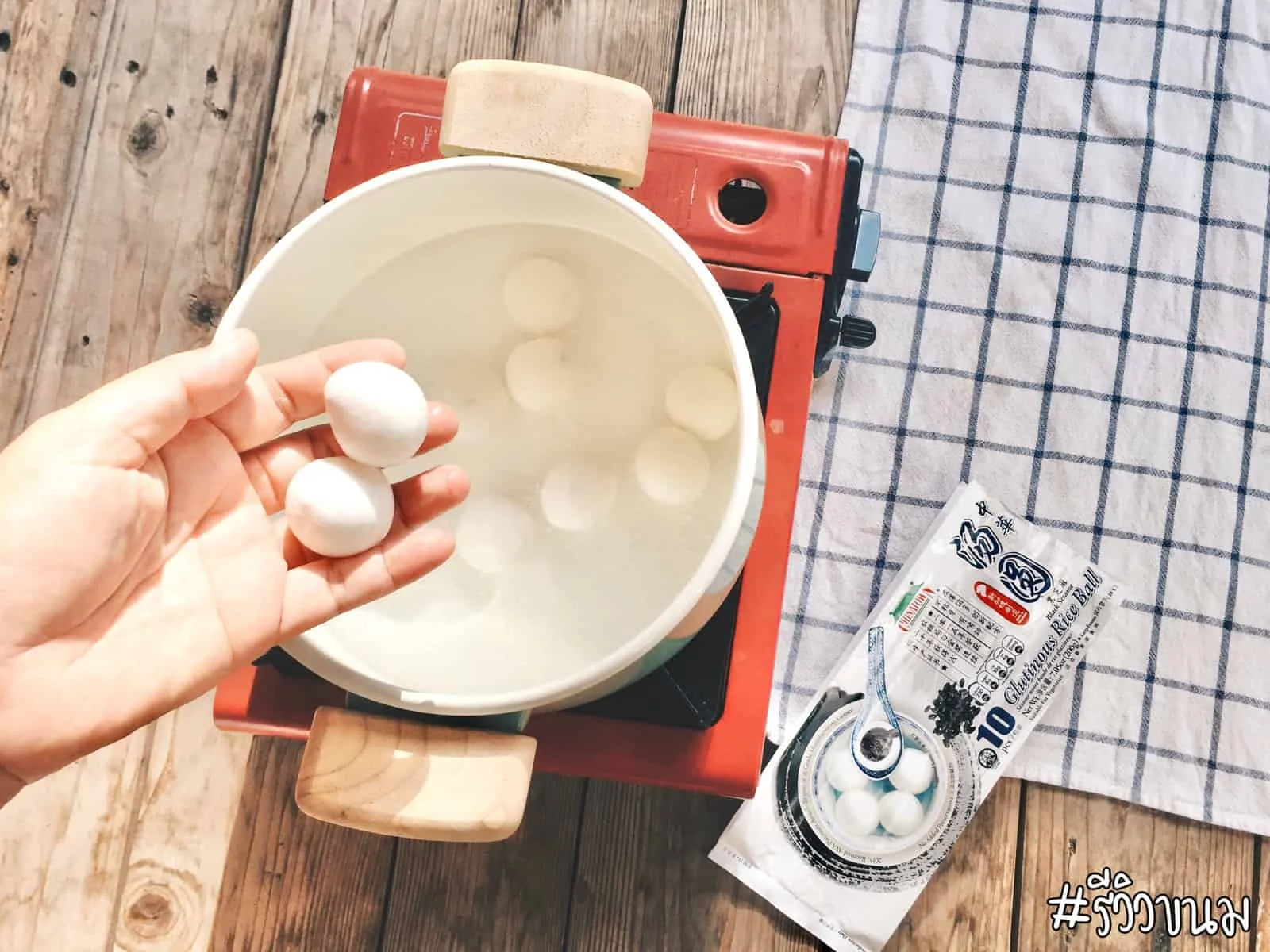นำลูกบัวลอยลงไปต้มในน้ำร้อน เพียง 5 นาที