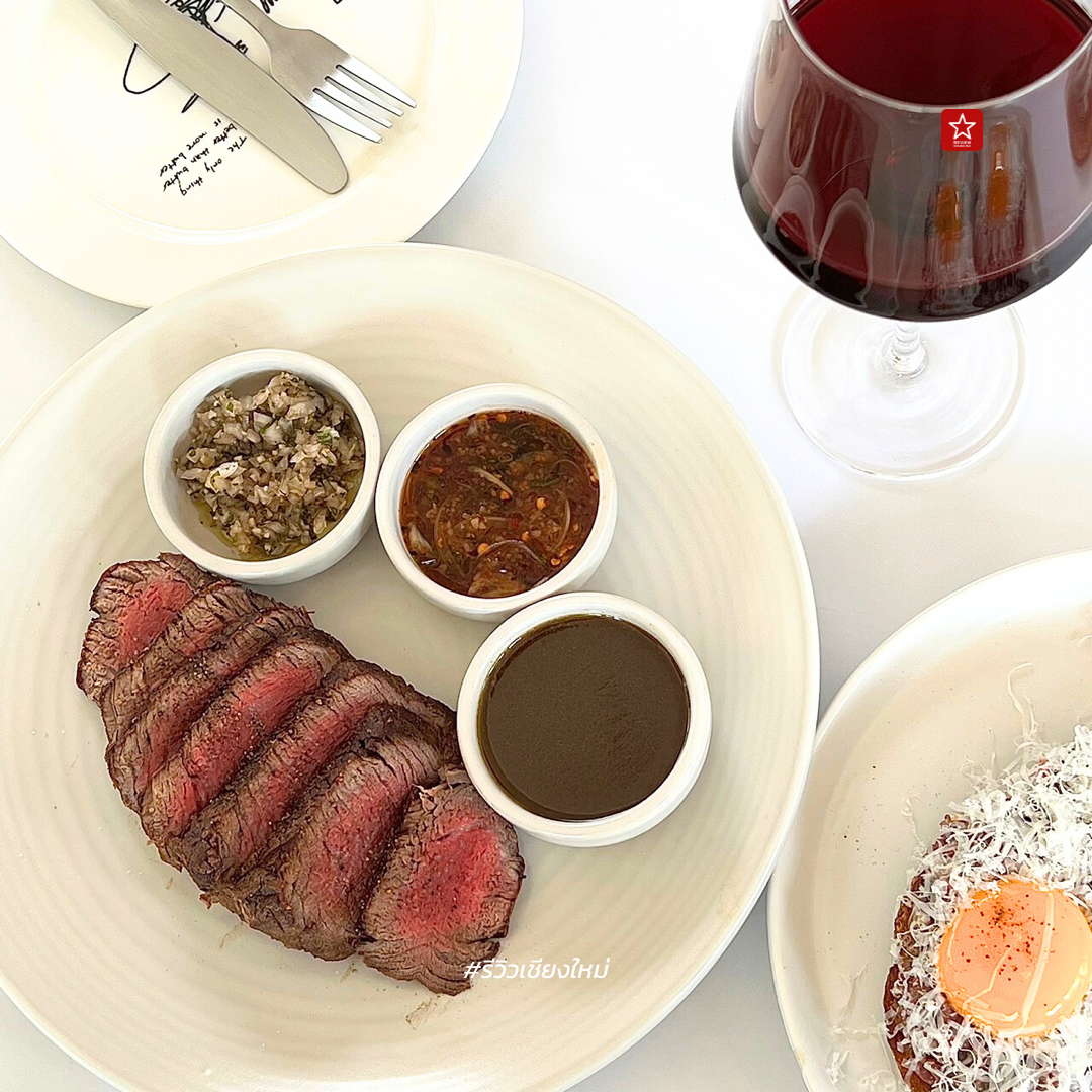 เมนูต่อมา Tenderlon สเต็กเนื้อวัวแบบ Medium Rare ทานคู่กับน้ำจิ้มที่มีให้เลือกอยู่ 3 รสชาติ
