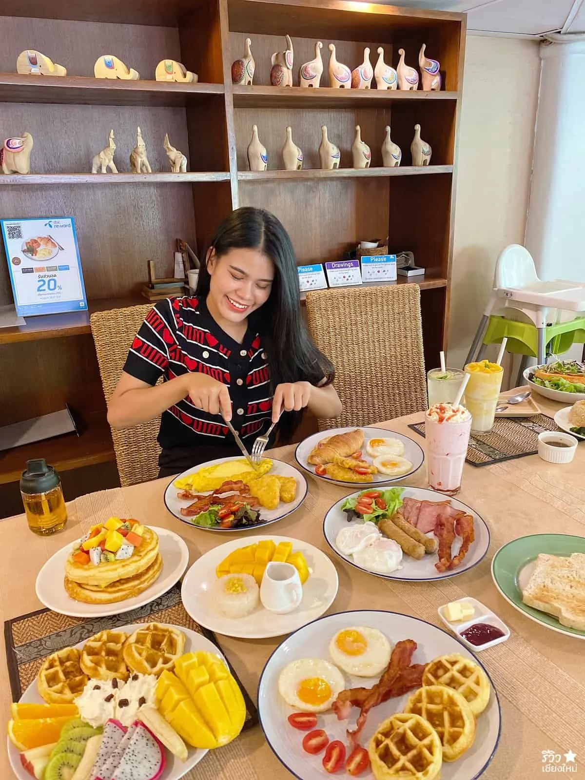 พูดถึงเมนูเค้าก็มีให้เลือกหลากหลายแบบสุด หลายร้อยเมนู !!! ไม่ว่าจะเป็น Breakfast ที่มีทั้งแบบ American และไทยเลย ใครอยากทาน Sandwiches, Toast, Pancake, Muesli, Salad หรือจะเป็นข้าวต้มเค้าก็มี แล้วร้านเค้าเปิดถึงช่วงหัวค่ำ ดังนั้นหากใครที่อยากทานอาหารจานเดียวเค้าก็มีเน้อจ้าววว