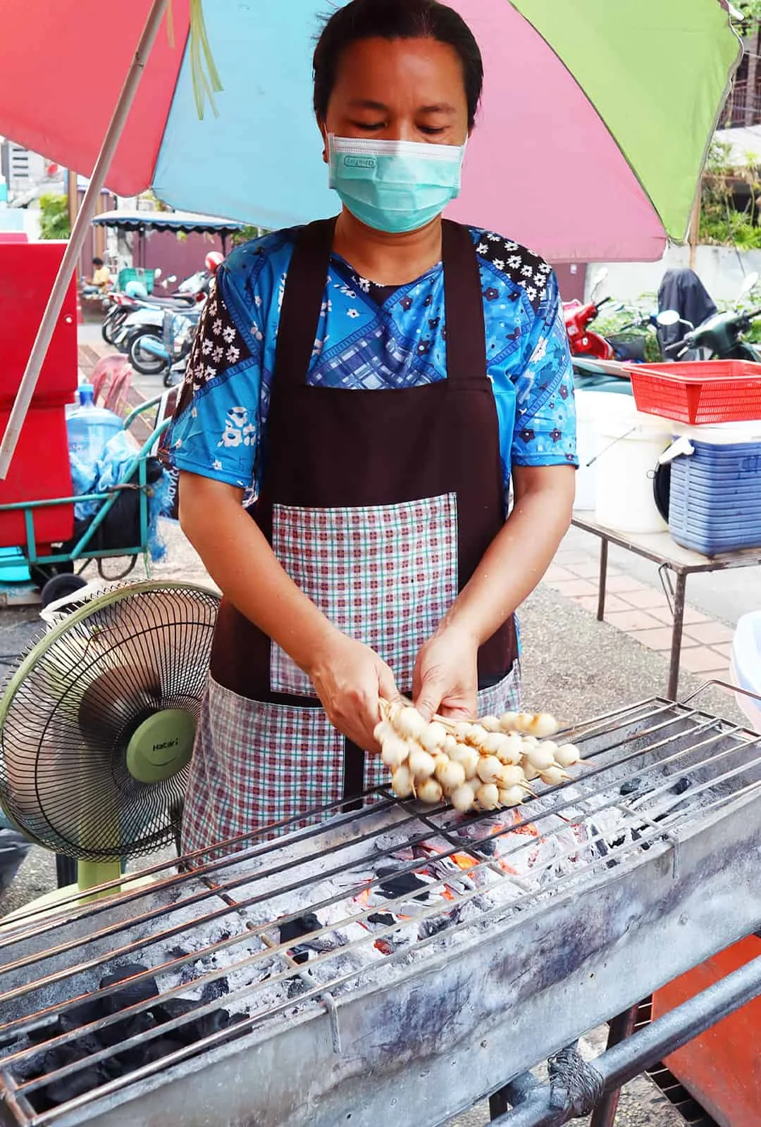 ร้านเปิ้นเปิดมาแล้วกว่า 21 ปีเลยจ้าว ร้านนี้ระหว่างที่รอคิวสุกี้ช้างเผือก ก็จะเห็นคนมุงร้านนี้ เลยเเวะไปสั่งระหว่างรอพรางๆ ร้านเปิ้นเป็นร้านลูกชิ้นปิ้ง พ่อค้าแม่ค้าก็ปิ้งกันมือระวิง สั่งปุ๊ปก็คือยืนดูแม่ค้าพ่อค้าเปิ้นปิ้งเพลินๆ ลูกชิ้นมีความลูกเล็ก กินเพลินสุดๆ รสชาติก็คืออร่อยมาก โดยเฉพาะน้ำจิ้มเปิ้นคือเผ็ด เข้มข้น หวานนิดๆ ไปลองจ้าว