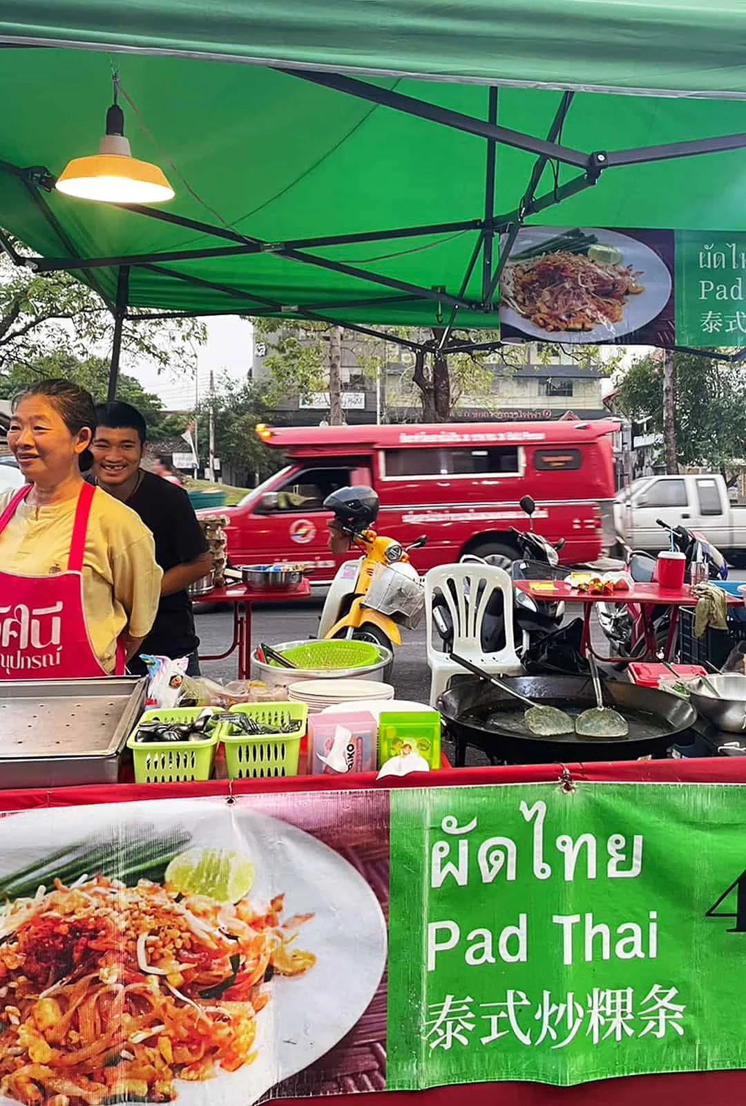 พิกัด: ร้านผัดไทย ร้านจะมีป้ายสีเขียวๆ เด่นๆ ตรงข้ามกับร้านขายยา