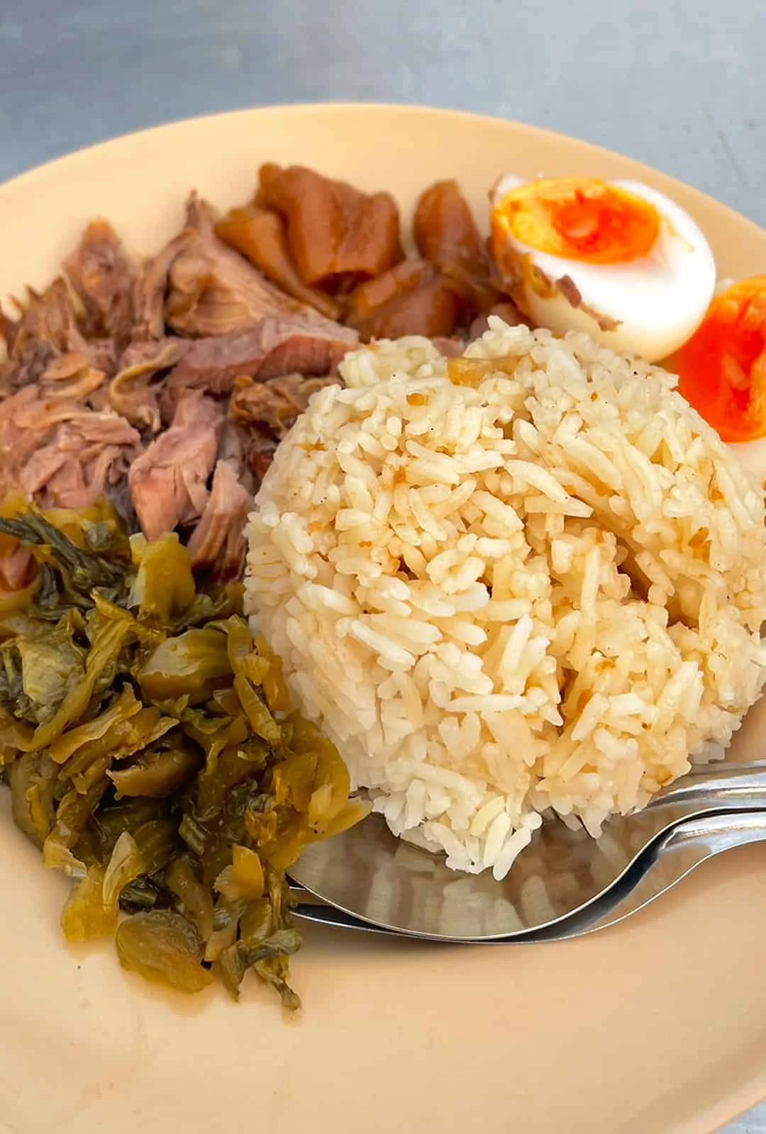 แม่ก้าเปิ้นบอกว่าเปิดมาแล้วกว่า 50 ปีเลยหน๋า แม่ค้าเปิ้นงามขนาดจะไปซื้อข้าวขาหมูหรือไปยืนดูแม่ค้าน้าา คริๆ ร้านก็คือเป็นร้านขาหมูเจ้าดัง คนยืนรอคิวเยอะมากก ถ้าจะพูดถึงขาหมูสไตล์ Street food ก็คงต้องยกให้เจ้านี้ เป็นเจ้าอร่อย ดัง เพราะเนื้อหมูที่นุ่มน้ำขาหมูรสชาติกลมกล่อม ไข่ที่ต้มมาเป็นยางมะตูม ทานแนมกับพริกสดและกระเทียมสดนี่ช่างฟินแต้ๆ เน้ออ