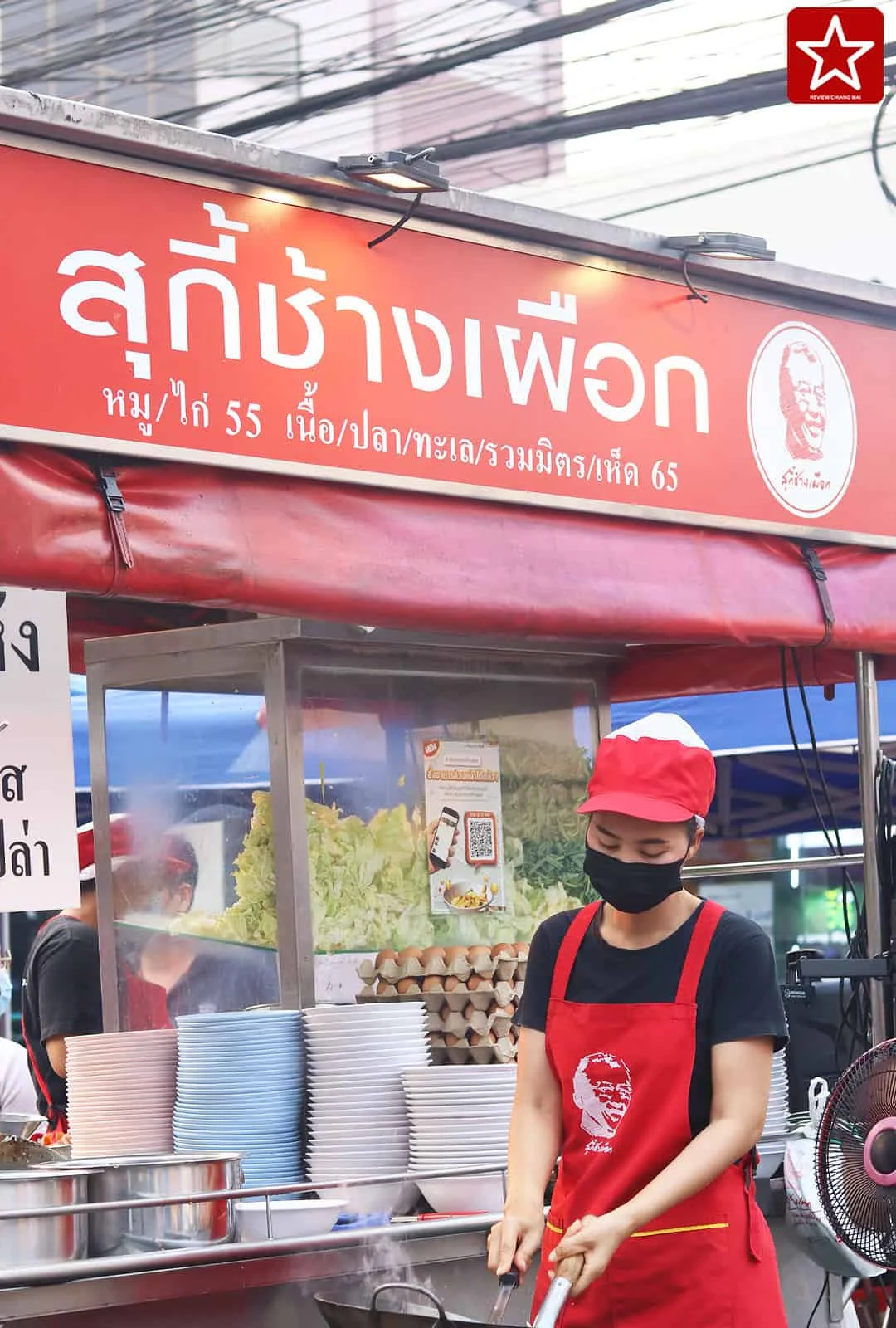 เปิดมาแล้วกว่า 31 ปีเลยเน้อ จุดเด่นของร้านนี้เเอดบอกเลย สุกี้แห้งที่ผัดหอมจนได้กลิ่นไหม้กระทะเบาๆ ที่ผัดใหม่สดๆ ชามต่อชาม ตัวผักก็คือสด กรอบ หวาน ตอนผัดก็คือจะมีน้ำผักที่ออกมาจะทำให้ทุกอย่างกลมกล่มเข้ากันขนาด! ส่วนหมูก็หมักมานุ่มสุดๆ มีความเด้งๆ นิดๆ ไม่ต้องปรุงอะไรเพิ่มเลย ใส่แค่ตัวน้ำจิ้มสูตรเด็ดของทางร้าน ที่มีรสชาติหวานนำ เผ็ดนิดๆ หอมเครื่อง เข้มข้น ครบรสขนาดเลยเน้อ รวมๆ คือเด็ดสุดห้ามพลาดด