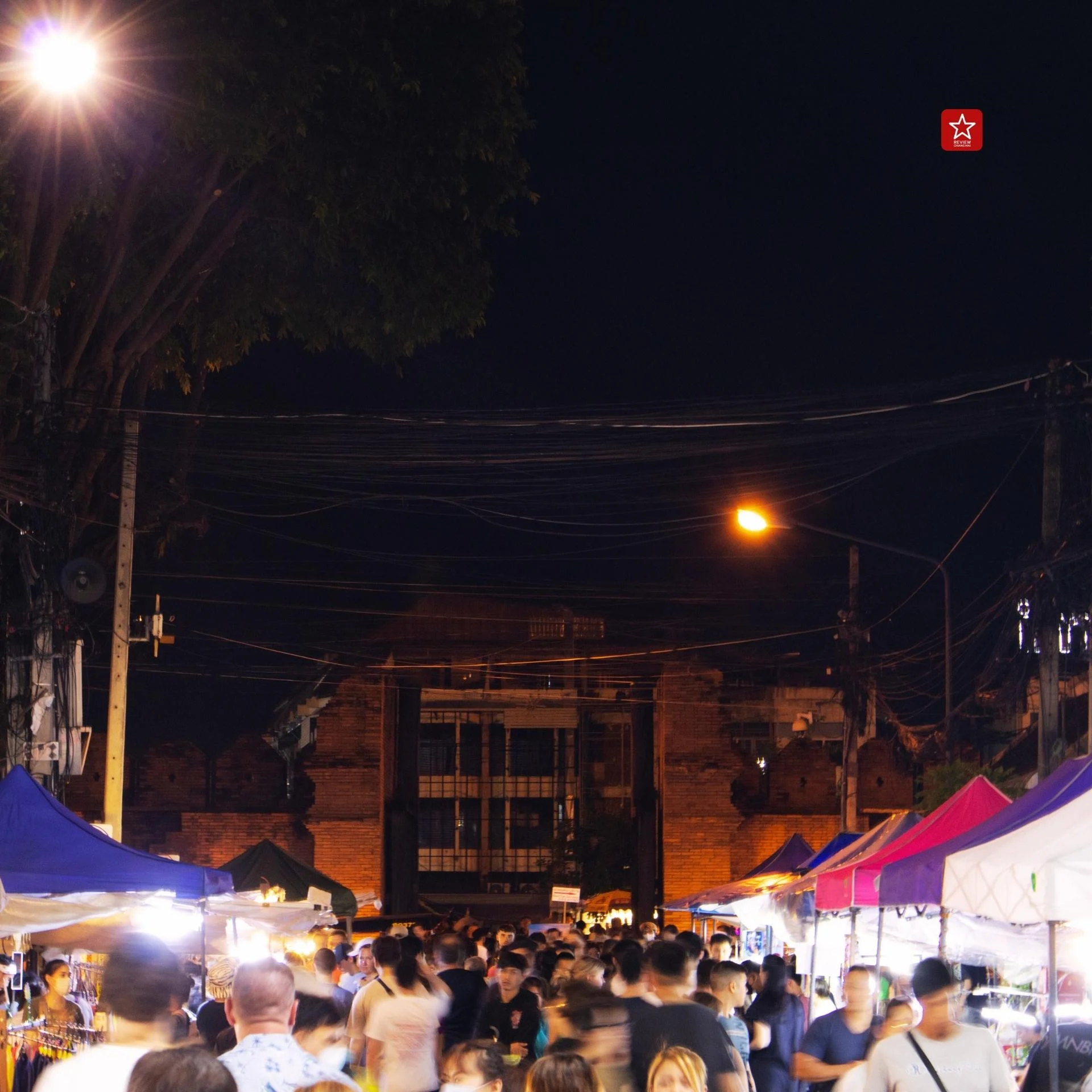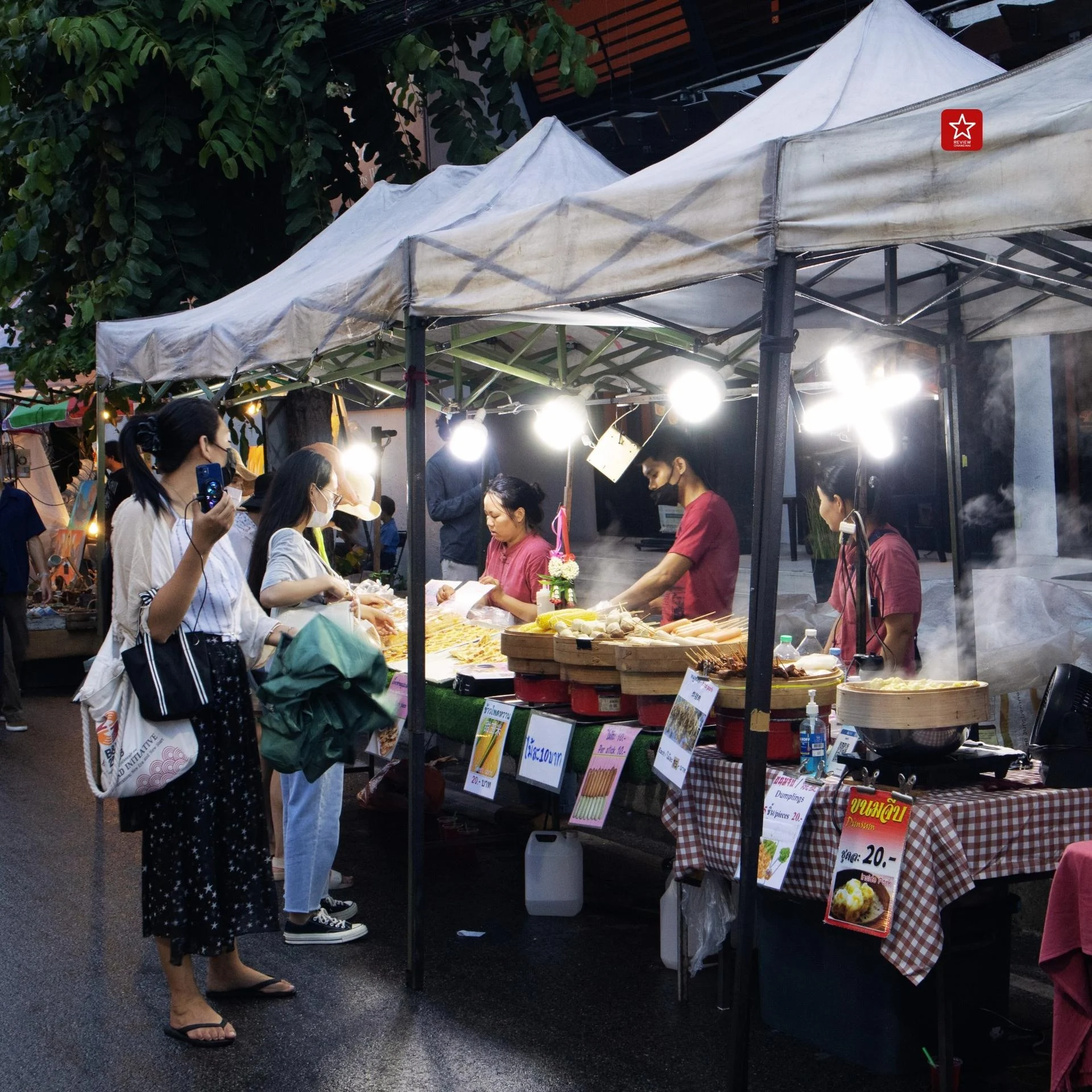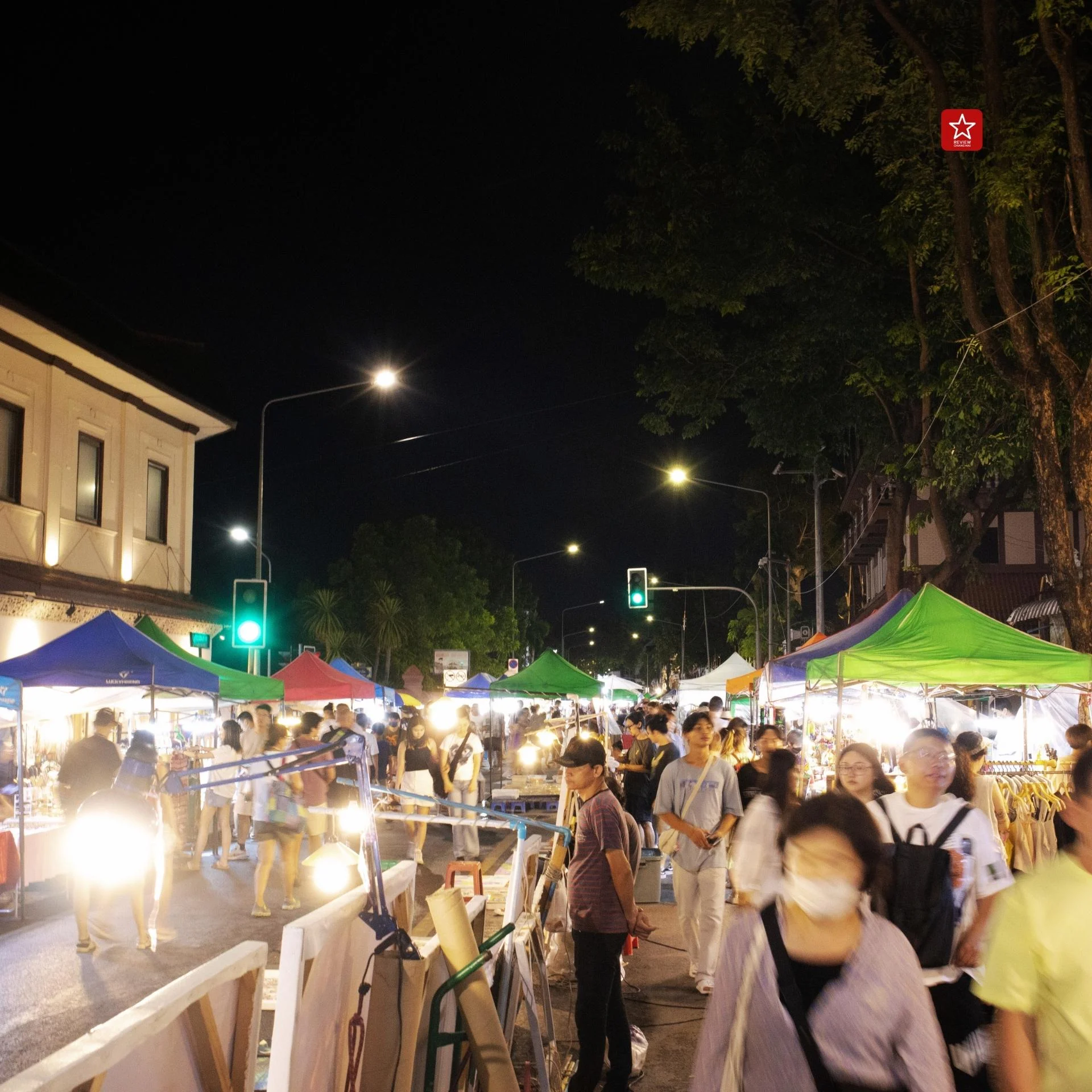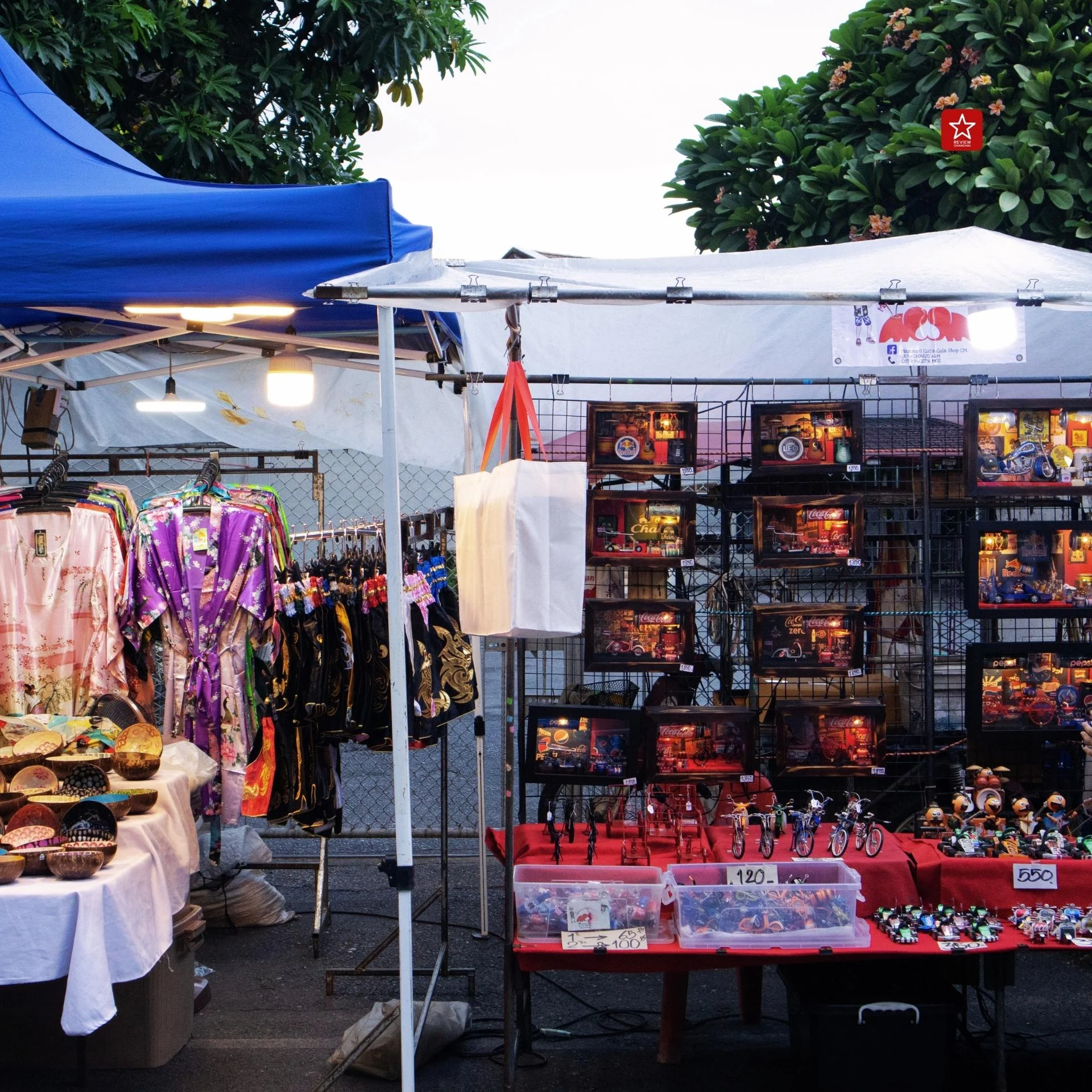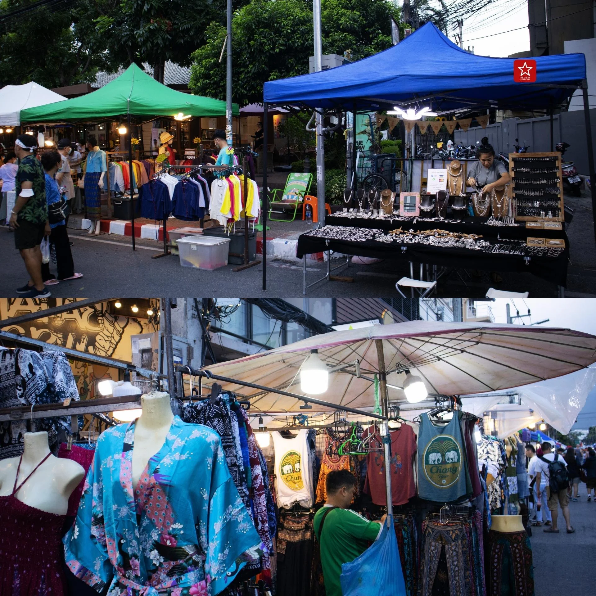 ในฝั่งของสองข้างตลาดจากที่เข้ามา จะเห็นได้เลยว่าเต็มไปด้วยเหล่าพ่อค้าแม่ขาย ออกมาตั้งร้านขายของกันอย่างคึกคัก อัดแน่นกันเต็มสองข้างทาง ดึงดูดให้ผู้คนที่มาเดิน ต่างพากันแวะเดินเข้าไปเลือกซื้อของกัน
