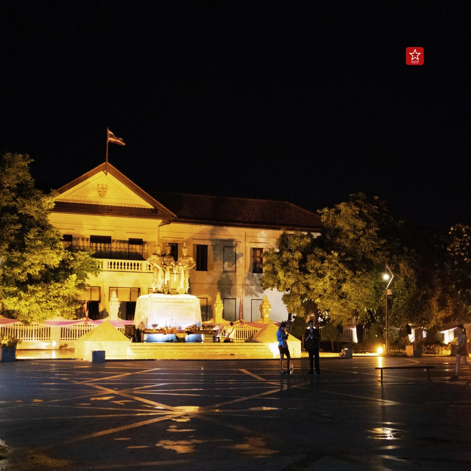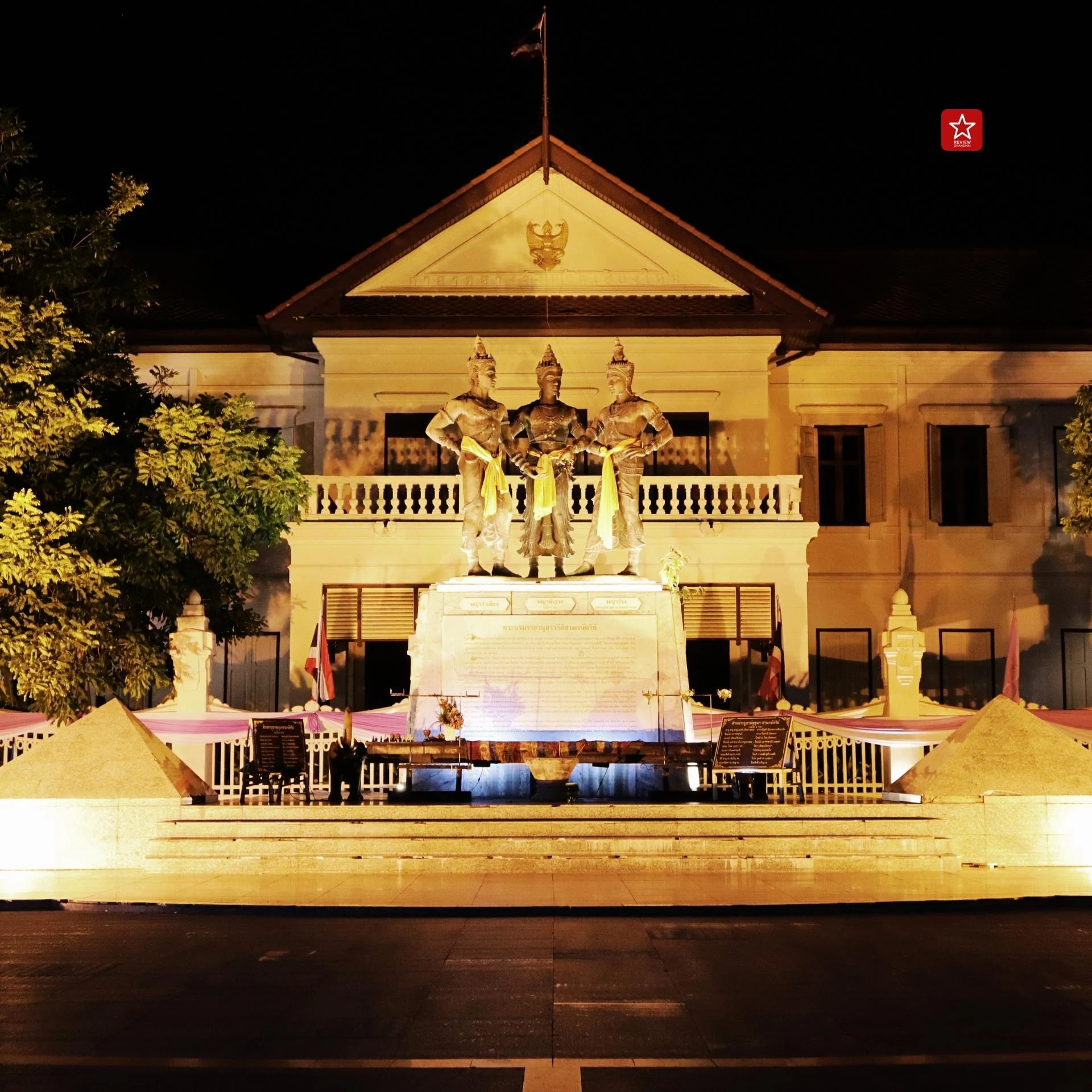 ตรงบริเวณนี้จะมีลักษณะเป็น ลานกว้าง เปิดพื้นที่ให้ผู้คน ได้เข้ามาทำกิจกรรมกันได้ โดยจะมีอนุเสาวรีย์สามกษัตริย์ตั้งอยู่ด้านหน้าศาลากลางเก่า สามารถเดินมาไหว้สักการะ เรียกว่ากินอิ่ม ได้บุญ สุดคุ้มแล้วกับการมาเดินที่นี่