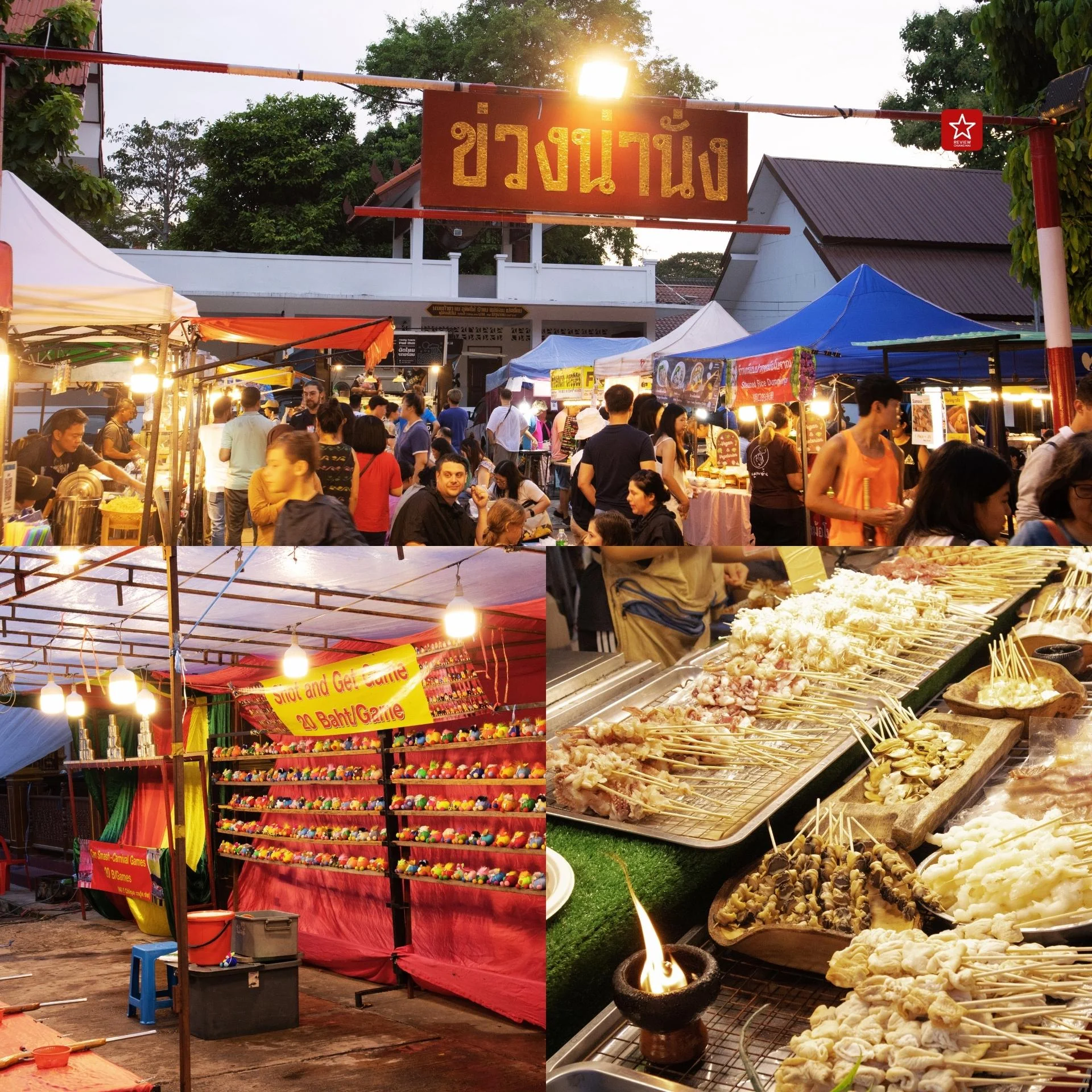 นอกจากของกินมากมายตามเส้นทางของเส้นถนน ภายในวัดแต่ละแห่ง ก็มีการจัดพื้นที่โซนตลาด อย่างในวัดศรีเกิด ก็จะมี “ข่วงน่านั่ง” จัดขึ้นให้คนเดินถนนได้เข้ามาแวะพักกัน แวะเล่นกิจกรรมอื่นๆ กัน