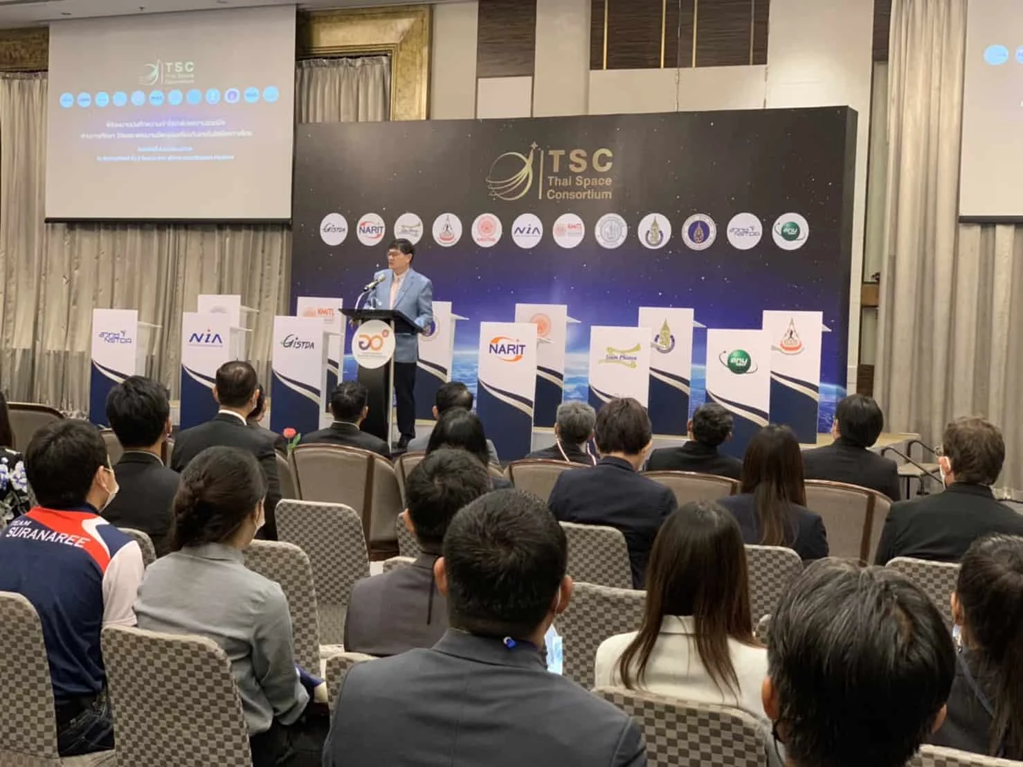 พิธีลงนามบันทึกความเข้าใจว่าด้วยความร่วมมือด้านการศึกษา วิจัย และพัฒนานวัตกรรม เกี่ยวกับเทคโนโลยีอวกาศไทย จัดขึ้นเมื่อวันที่ 5 เมษายน 2564 ณ ห้องกมลทิพย์ โรงแรมเดอะ สุโกศล กรุงเทพฯ ได้รับเกียรติจากศาสตราจารย์พิเศษ ดร. เอนก เหล่าธรรมทัศน์ รัฐมนตรีว่าการกระทรวงการอุดมศึกษา วิทยาศาสตร์วิจัย และนวัตกรรม มาเป็นประธานในพิธีและร่วมเป็นสักขีพยาน