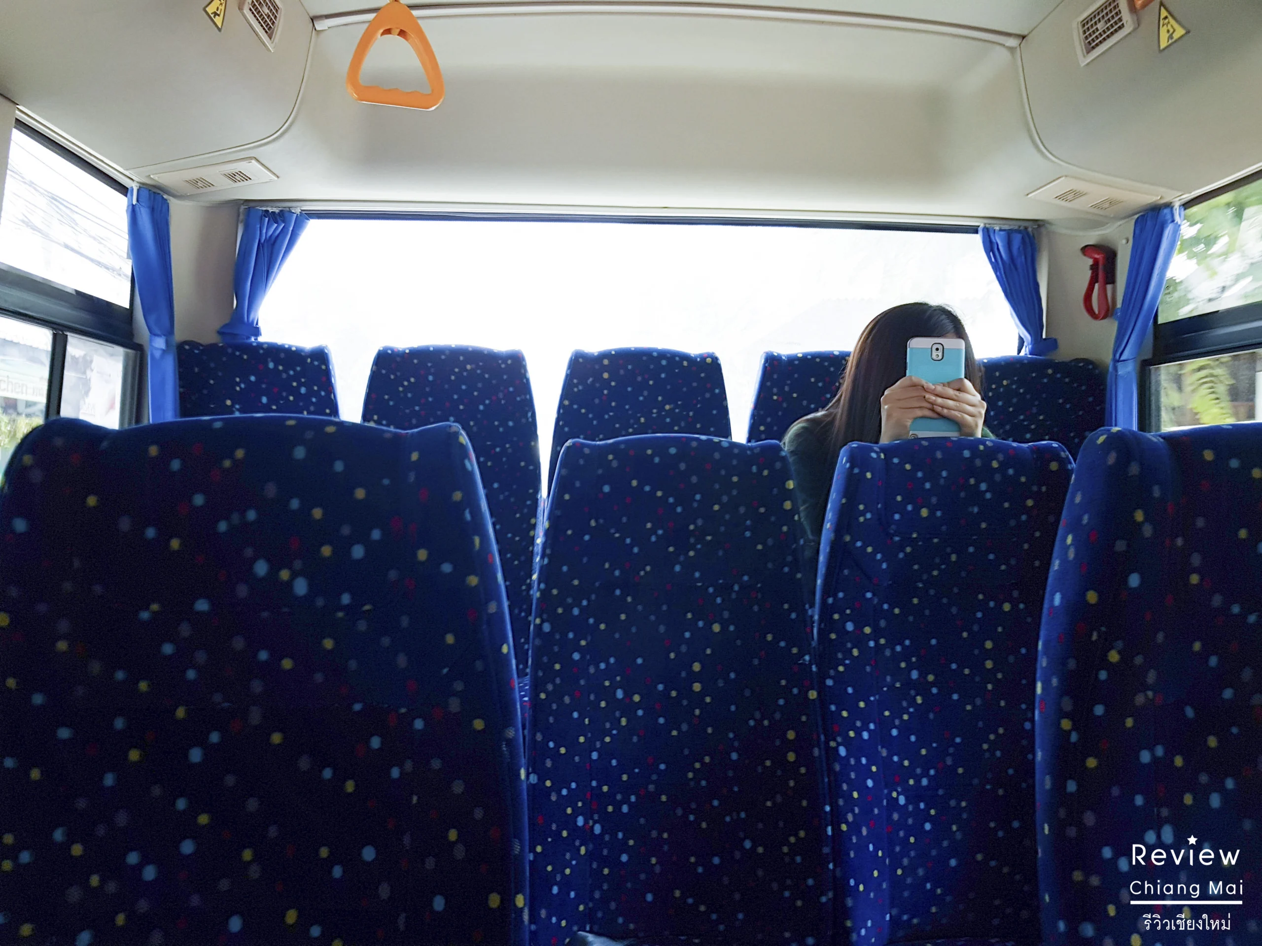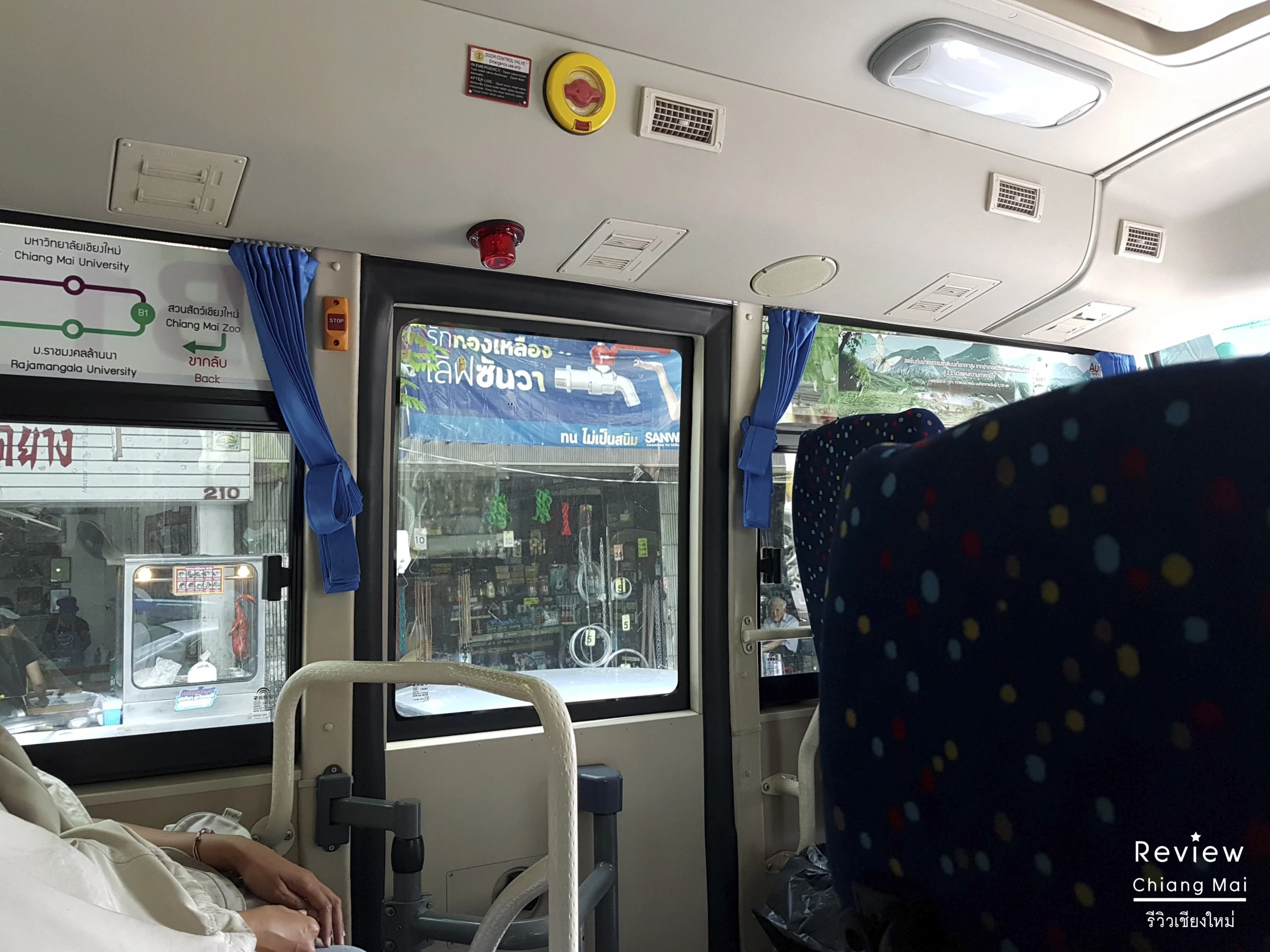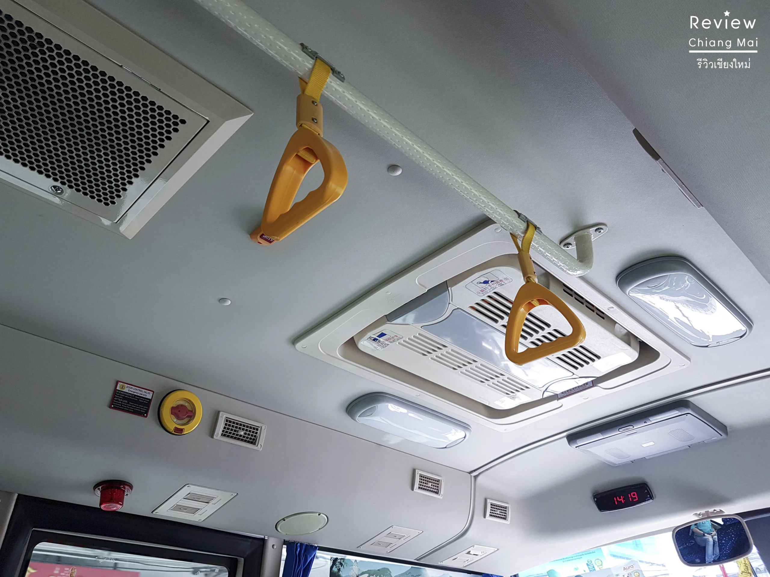 เมื่อขึ้นรถไปก็พบถึงความเย็นที่รอคอย.. แอร์ในรถเย็นมาก ตัดกับสภาพอากาศที่ไม่มีเมฆมาบดบัง แต่ที่พีคกว่านั้นก็คือ .. ทั้งรถมีกันอยู่สองคนค่ะ คือ … คนขับรถกับกระเป๋ารถเมล์ ก็เลยงงว่าปกติคนทั่วไปเขาไม่ขึ้นกันหรอ? พอสอบถามจึงได้ความว่า ปกติก็ขึ้นกันช่วงชั่วโมงเร่งด่วน คนที่ขึ้นส่วนใหญ่ก็มีคนไทยบ้าง จีนบ้าง แต่ฝรั่งน้อยหน่อย 15 บาท ตลอดสายจ้าา